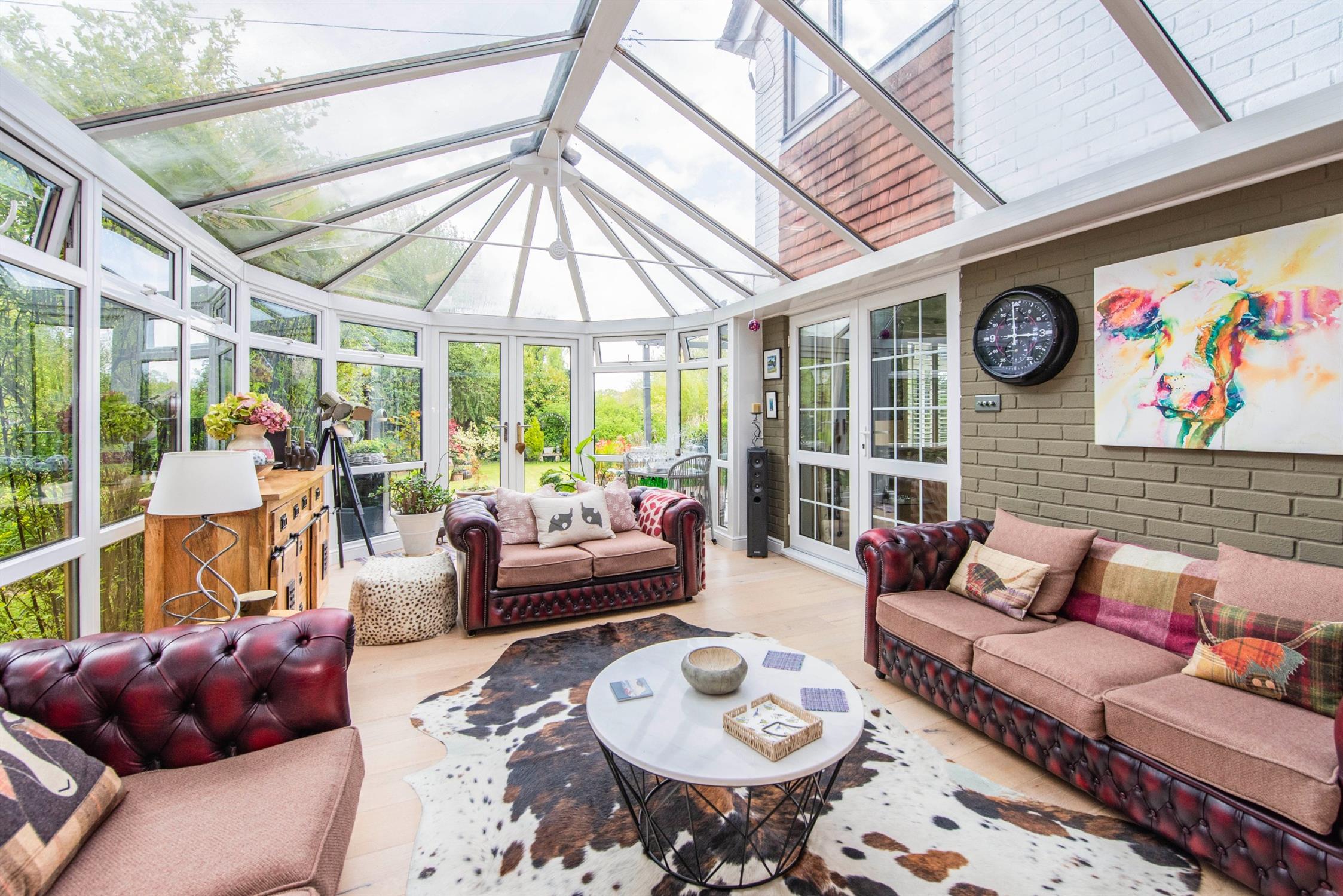 A fabulous addition to the ground floor accomodation, being double glazed with a vaulted glazed roof and double glazed opening doors onto the garden terrace. Attractive fitted wood burning stove.