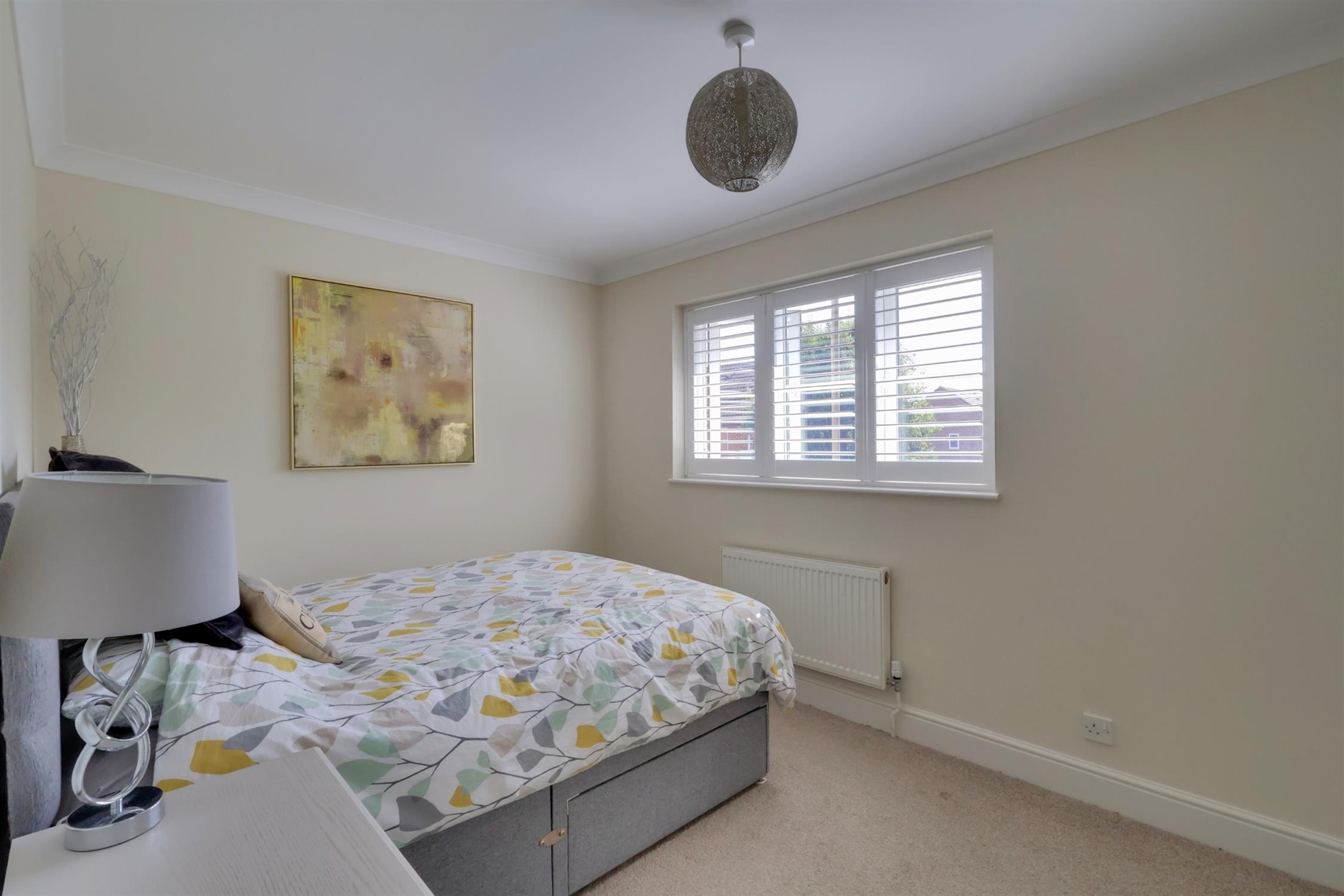 UPVC windows to front aspect with fitted shutters, radiator, various electric points, built in wardrobe with sliding mirror fronted doors, cupboard above the stairs with hanging rail and shelving.