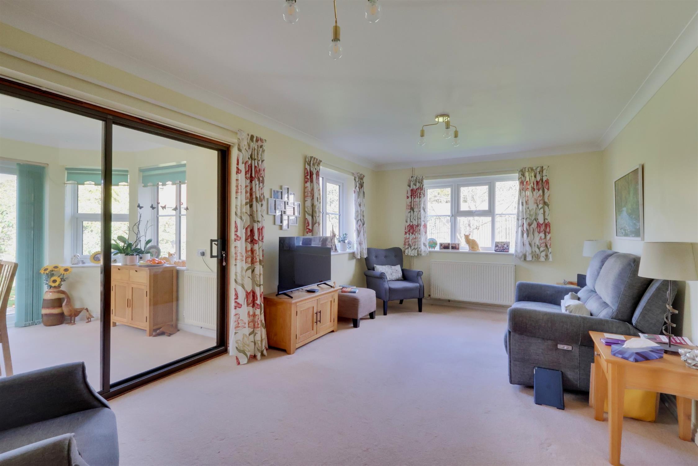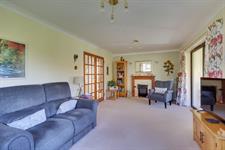 Double doors leading from the hallway. Twin aspect double glazed windows to side and rear gardens. Feature fireplace and surround. Radiator. TV & telephone point. Patio doors to:-