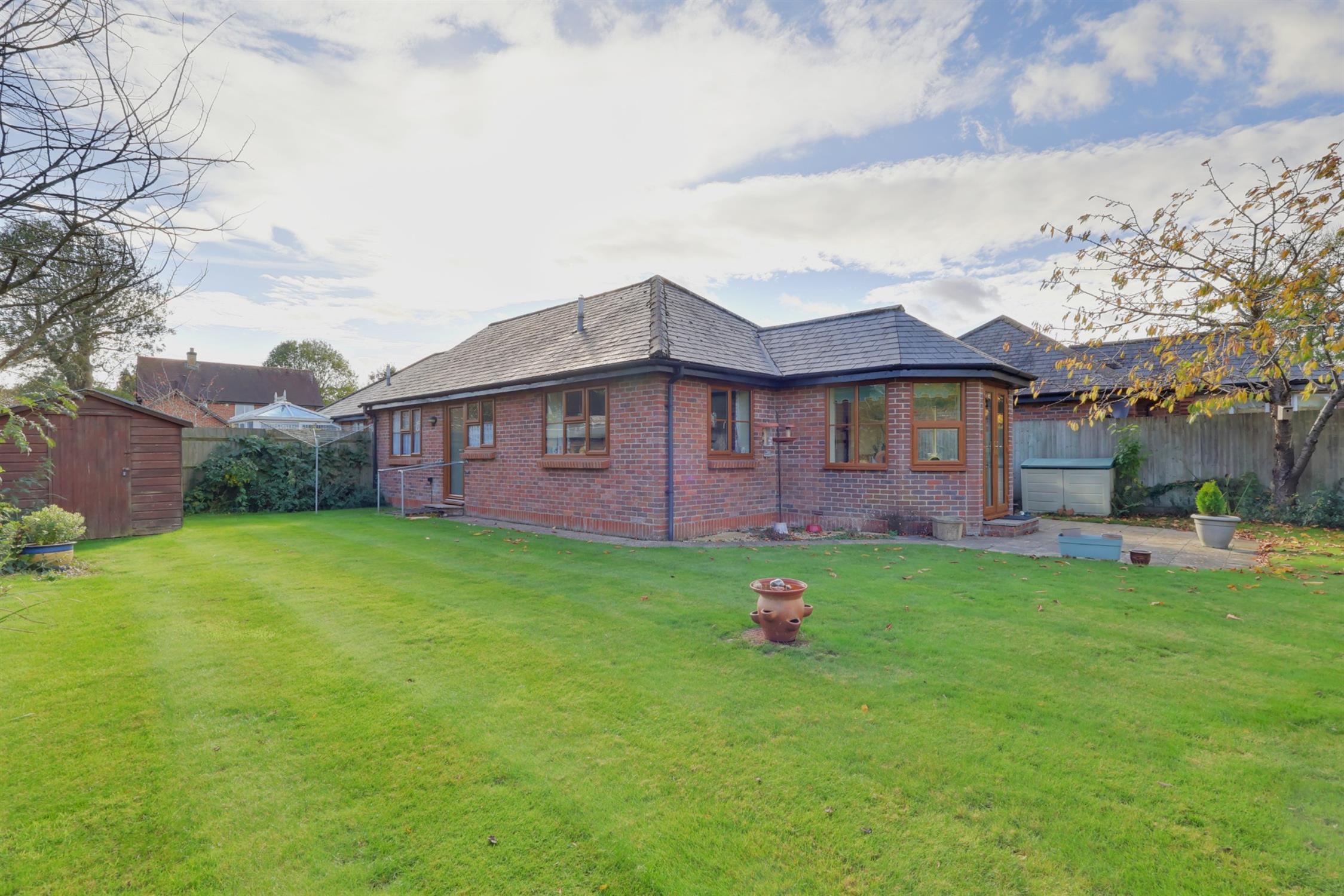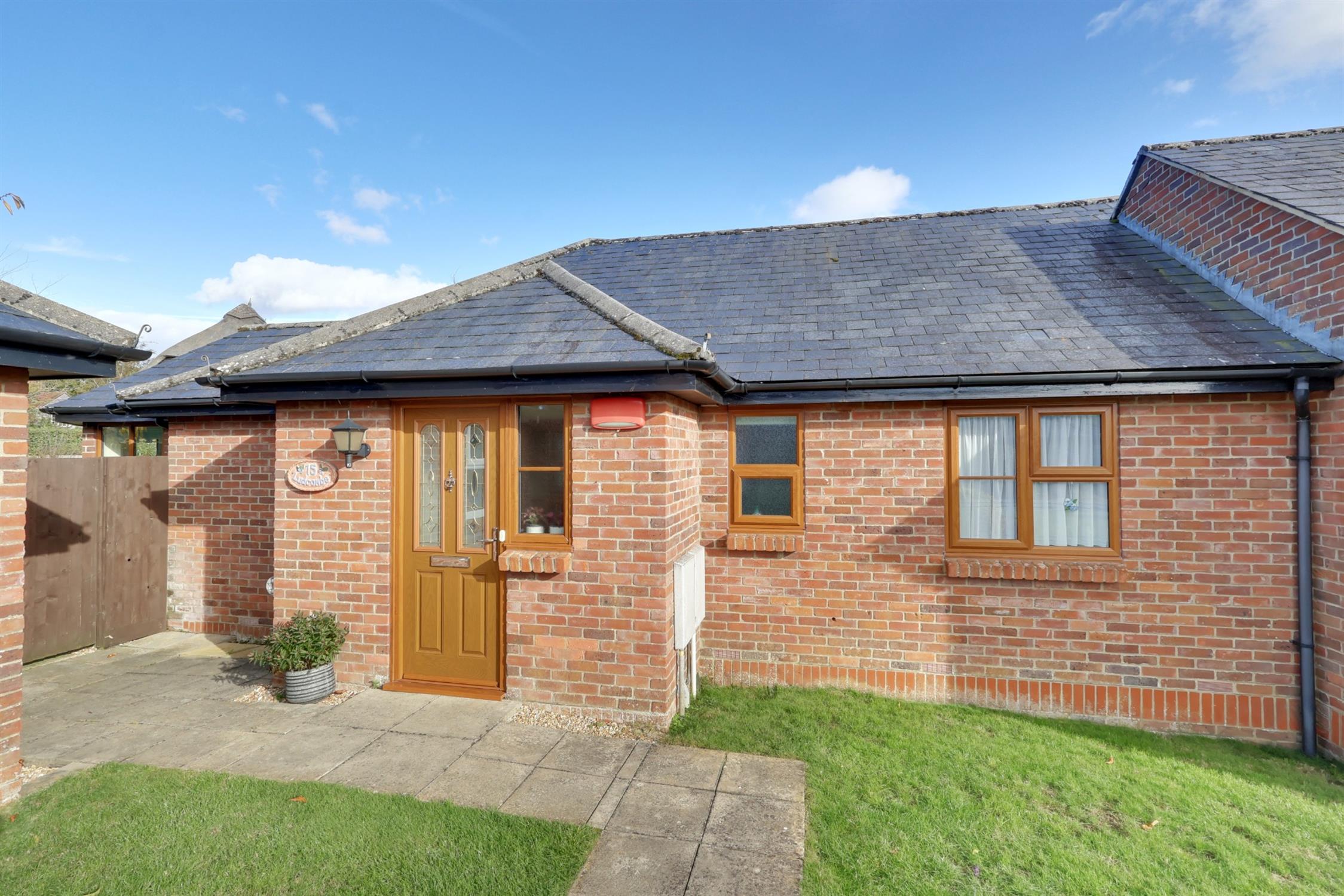 An attractive semi detached bungalow in this sought after peaceful location being one of seven bungalows for the over 55's set around a communal green minutes' walk from Denmead village centre. Internally, the property offers well proportioned accommodation featuring :-entrance porch opening into reception hall, lounge/dining room with feature fireplace and surround, opening into the sun lounge, kitchen with built-in oven, hob with hood over, door to private rear garden, two bedrooms and shower room. All double glazed windows and external doors replaced November 2021.