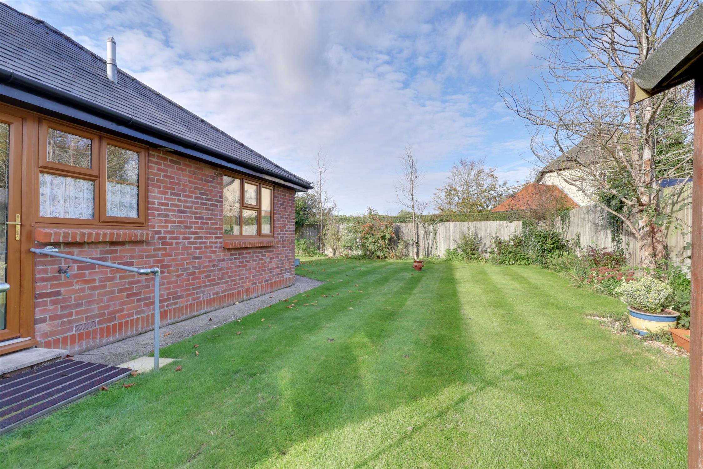 Private rear garden fully enclosed with side gate. Mostly laid to lawn with flower and shrub borders. Garden shed. Paved patio area.