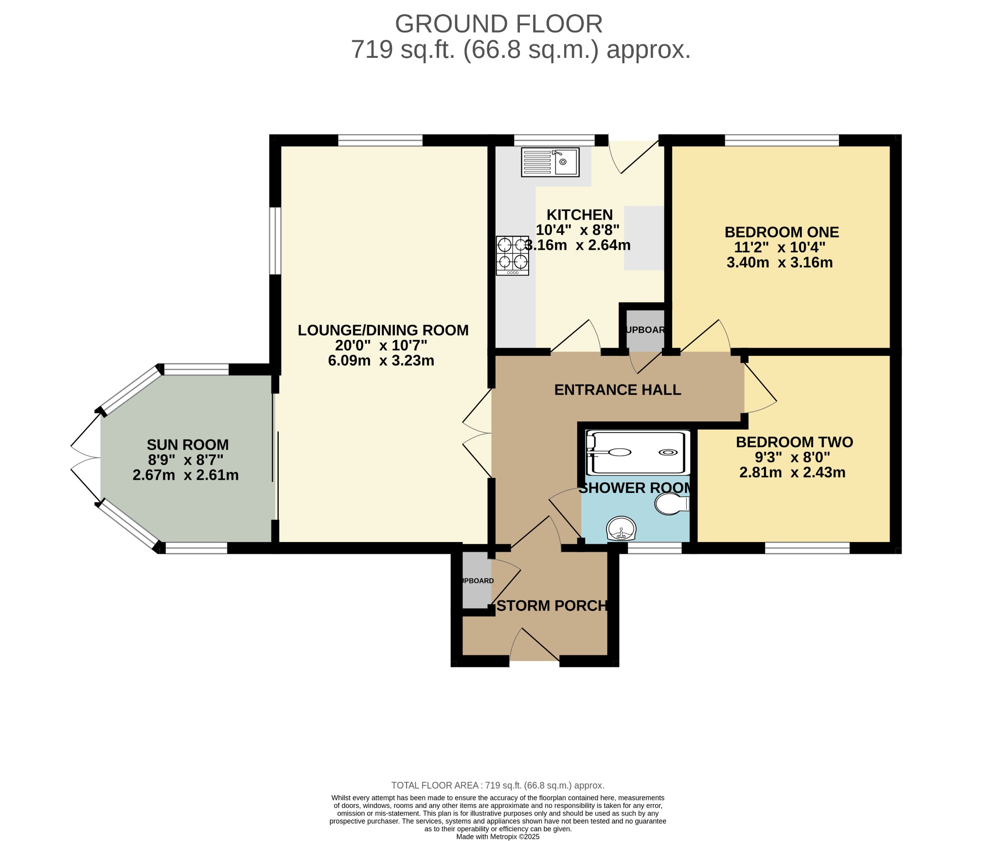 Brick construction with tiled roof and french doors to the garden. Radiator.