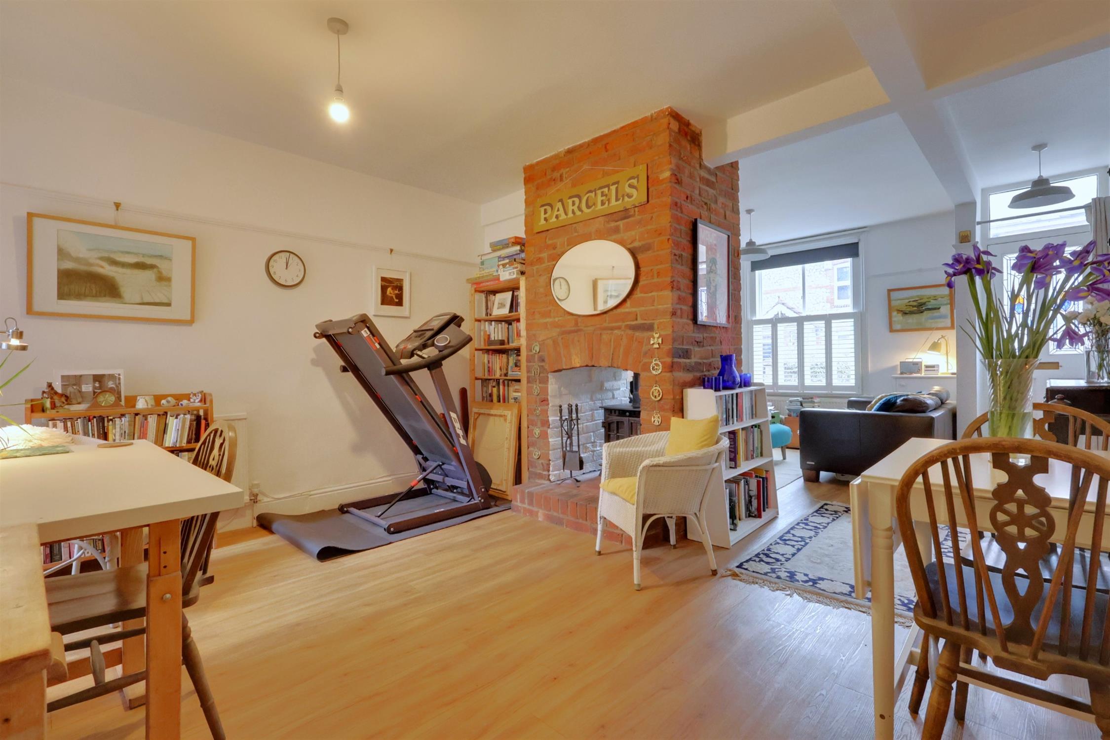 Wood burning stove. Three radiators. Wood effect flooring. Double glazed sash window with shutters. Door to rear garden.