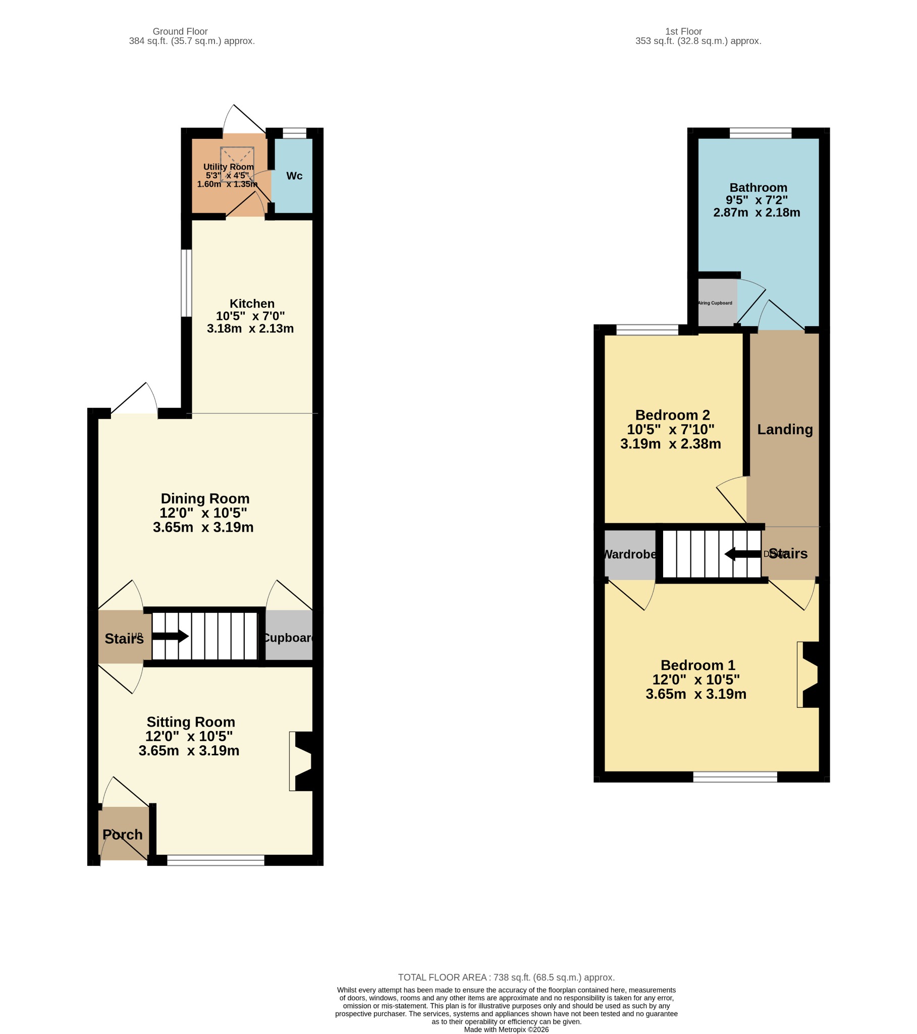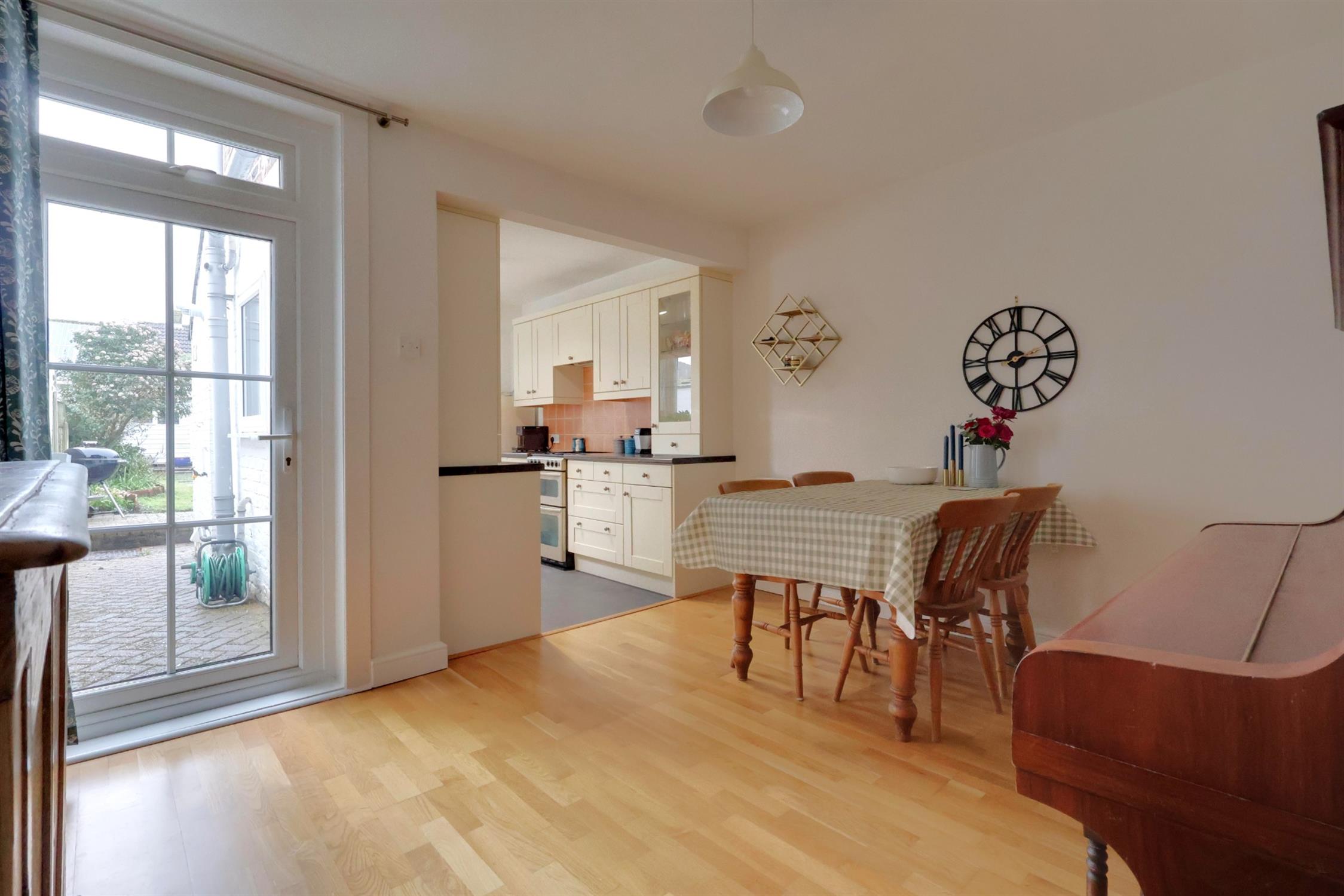 The kitchen has plenty of workspace and leads to a utility area separate WC. From the first floor landing is access to the modern fitted bathroom and two bedrooms. The rear garden is mostly laid to lawn, with a patio area, mature shrubs, garden shed and rear access which leads to an additional outside space. An internal viewing is highly recommended to appreciate the accommodation on offer.