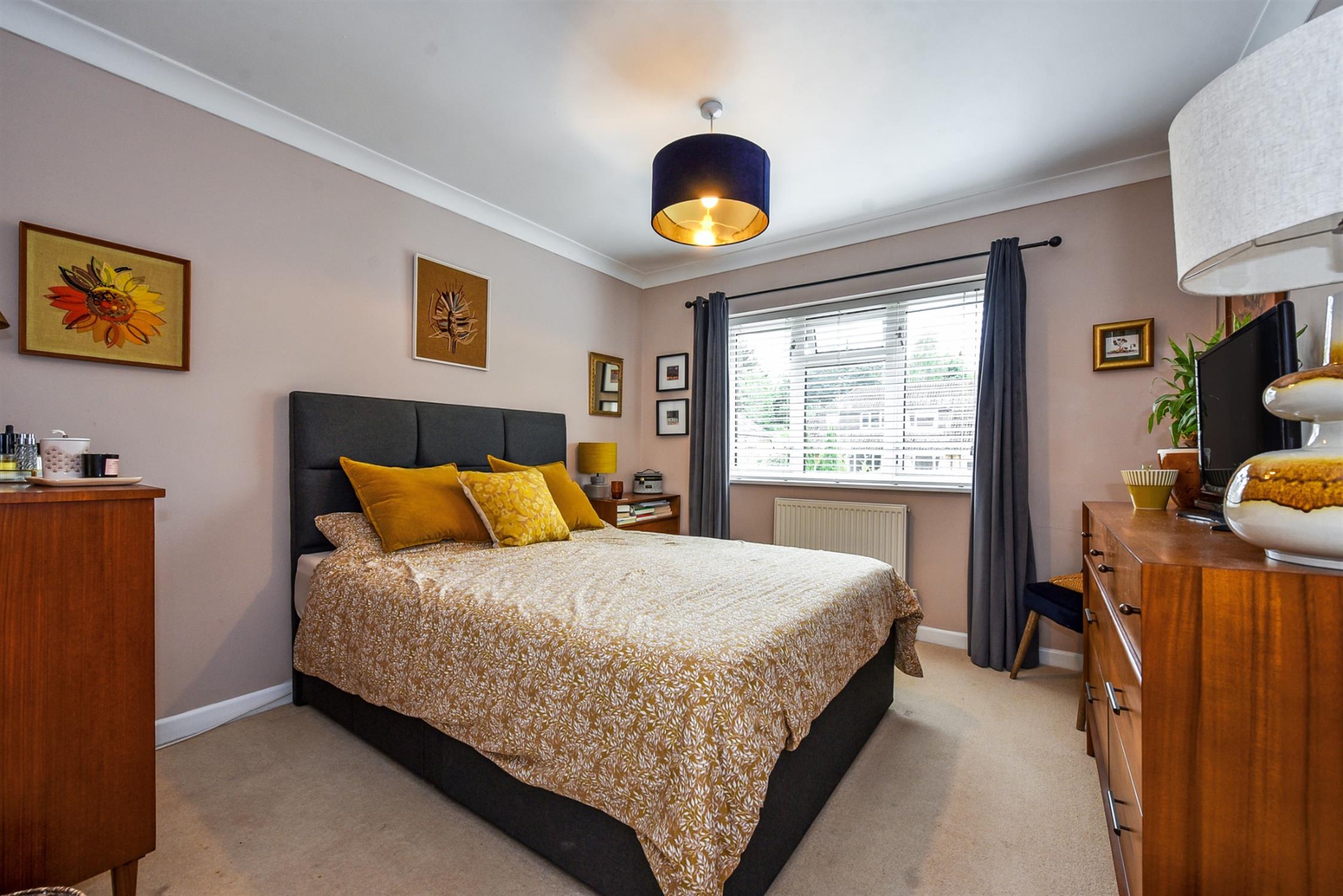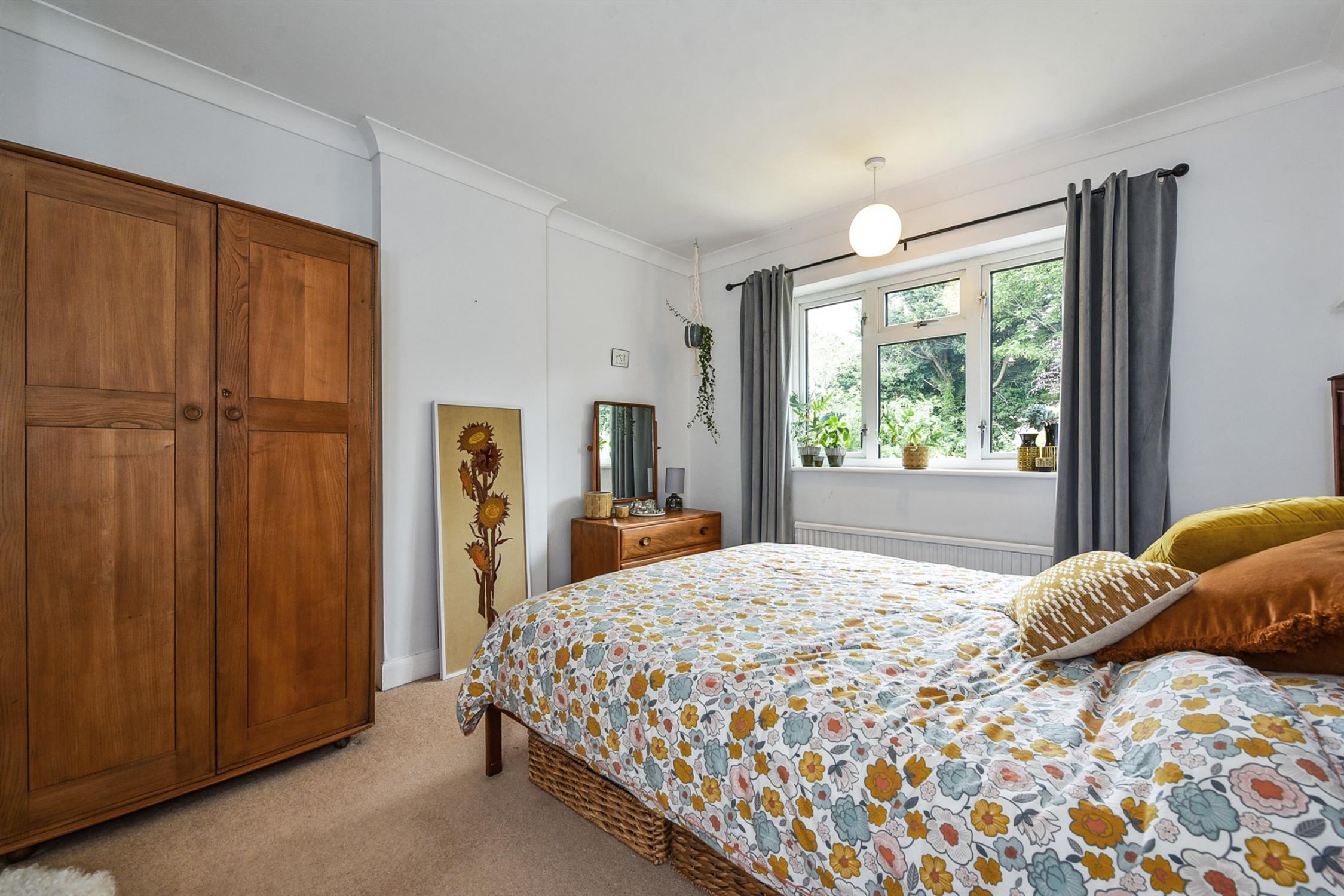 Double bedroom overlooking the garden with built-in wardrobe.
