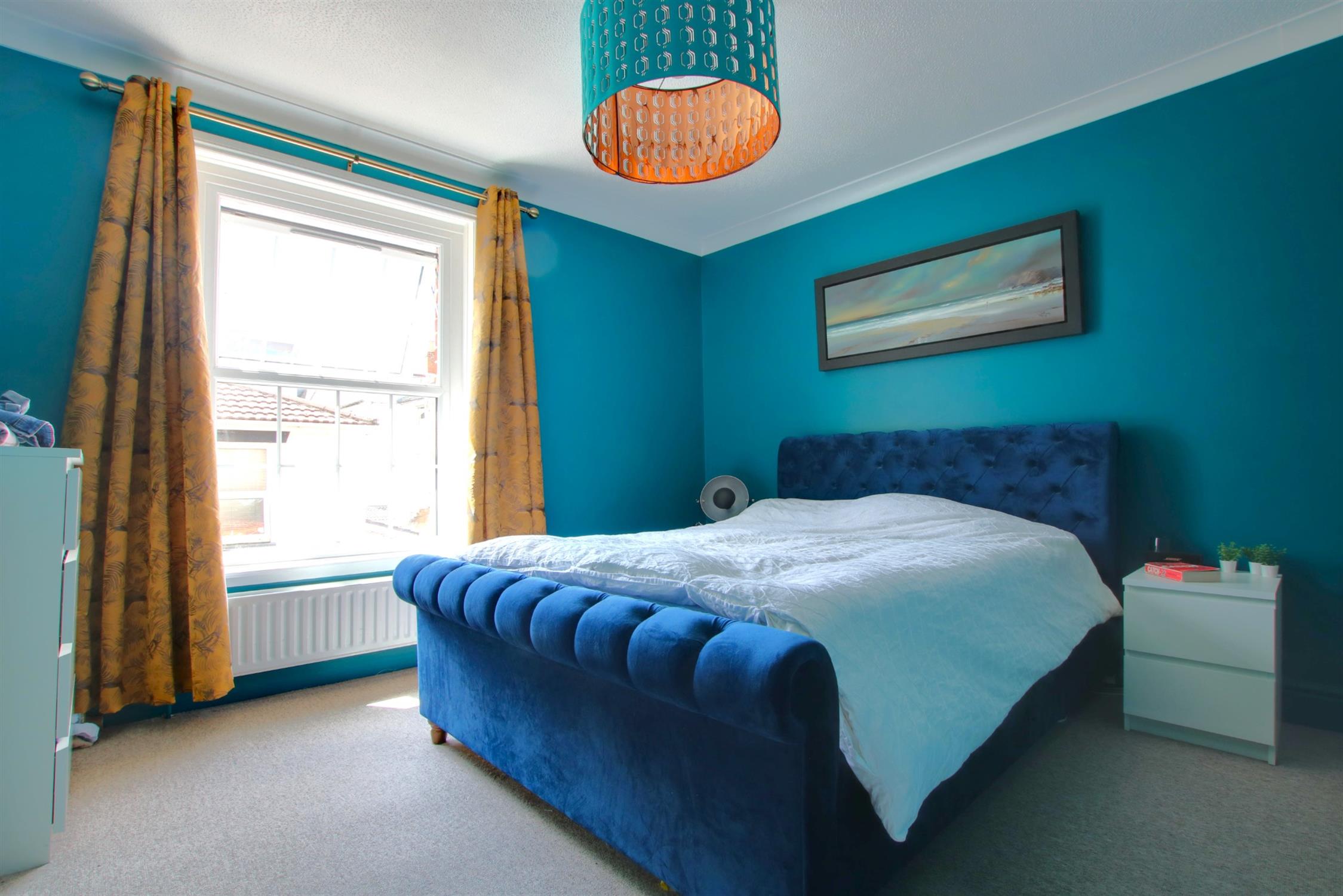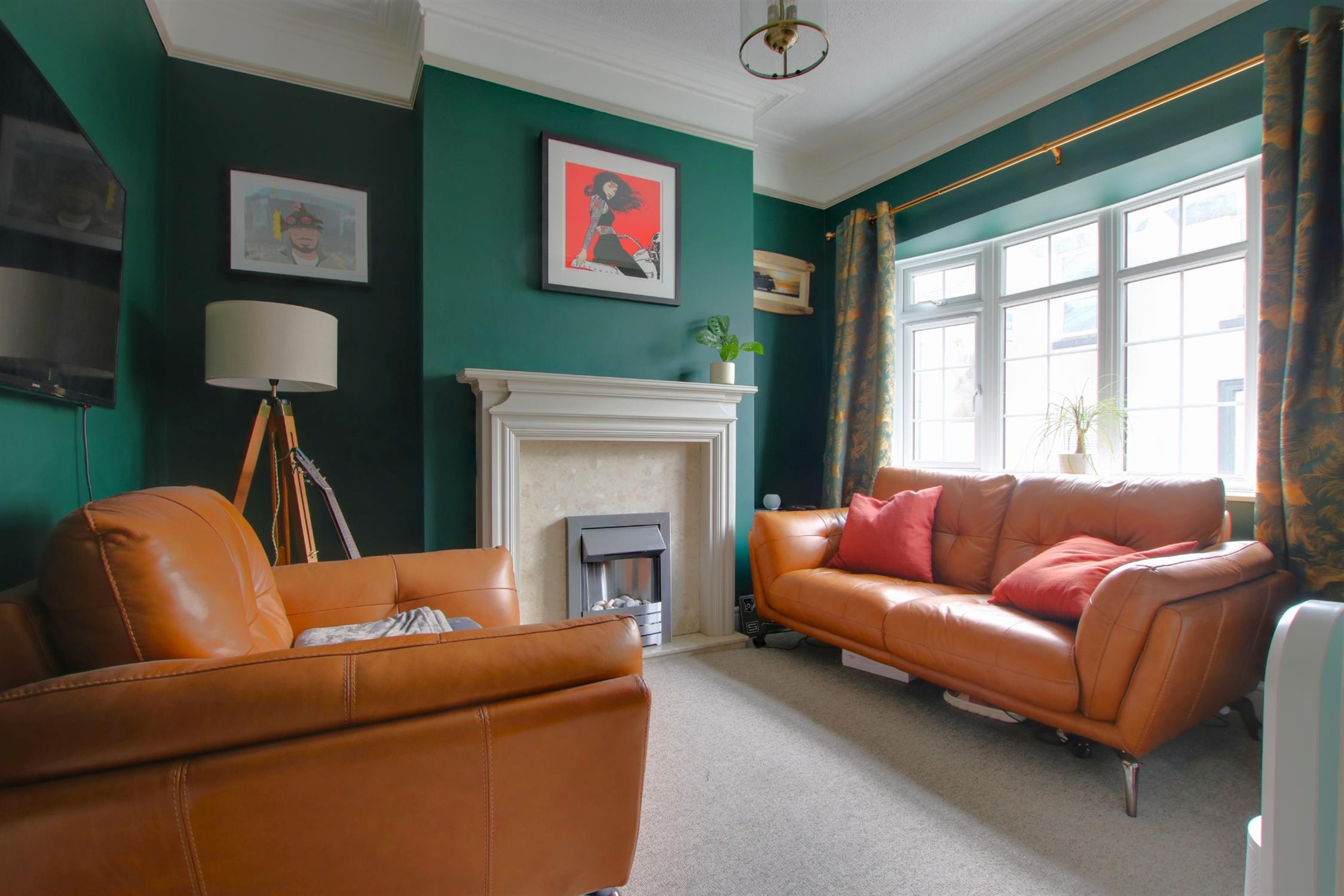 Carpeted. Electric fireplace. Double-glazed bay window to front aspect. Radiator.