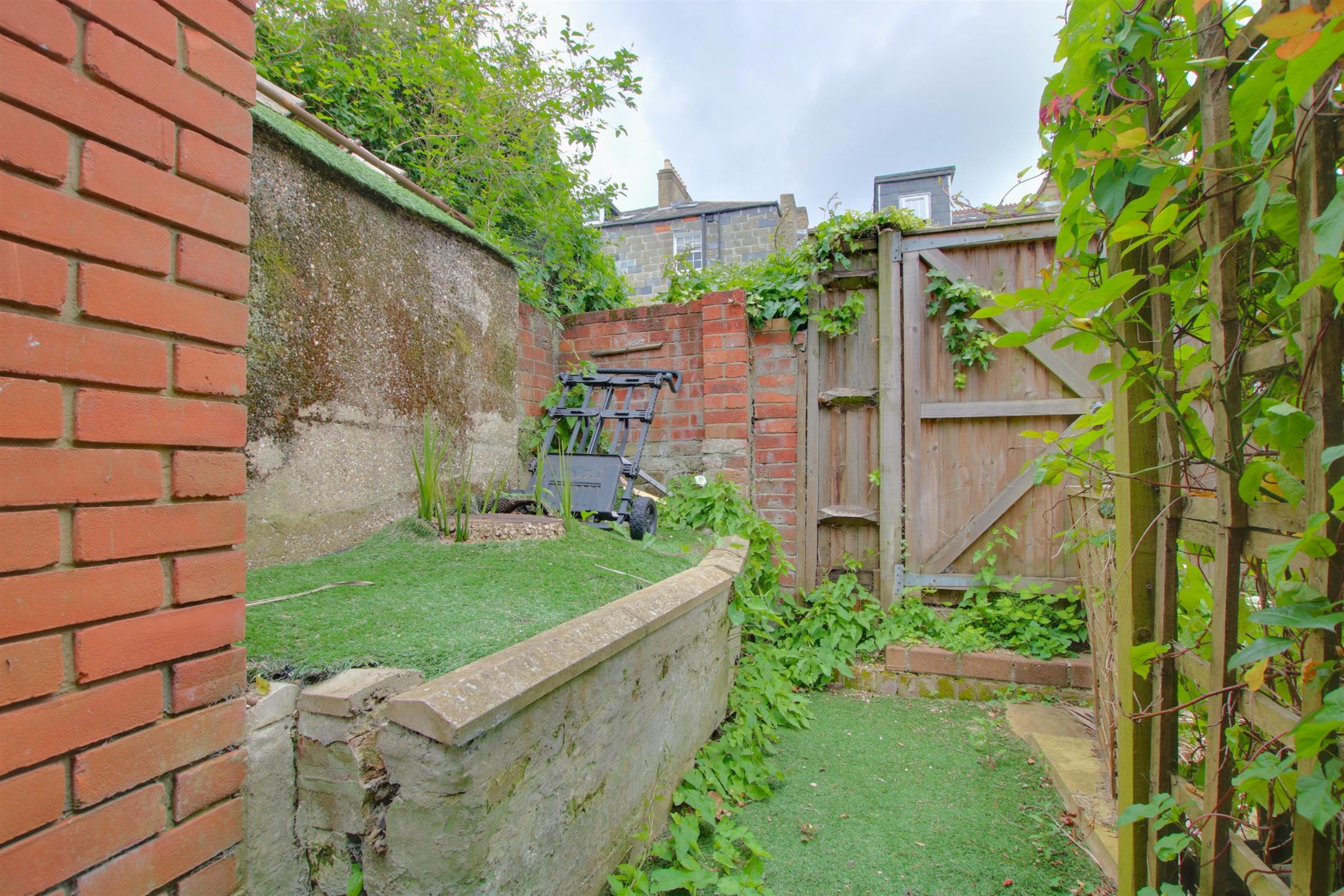 The rear courtyard garden is fully enclosed and is laid with artificial lawn. Gate providing rear access.