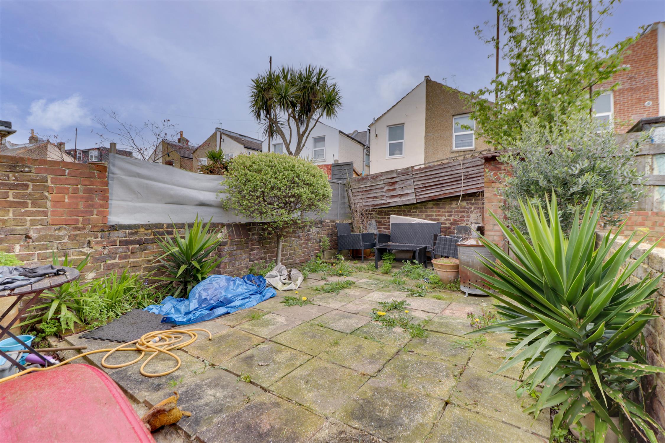 The rear garden is brick wall enclosed and paved for ease of maintenance with plant bed borders.