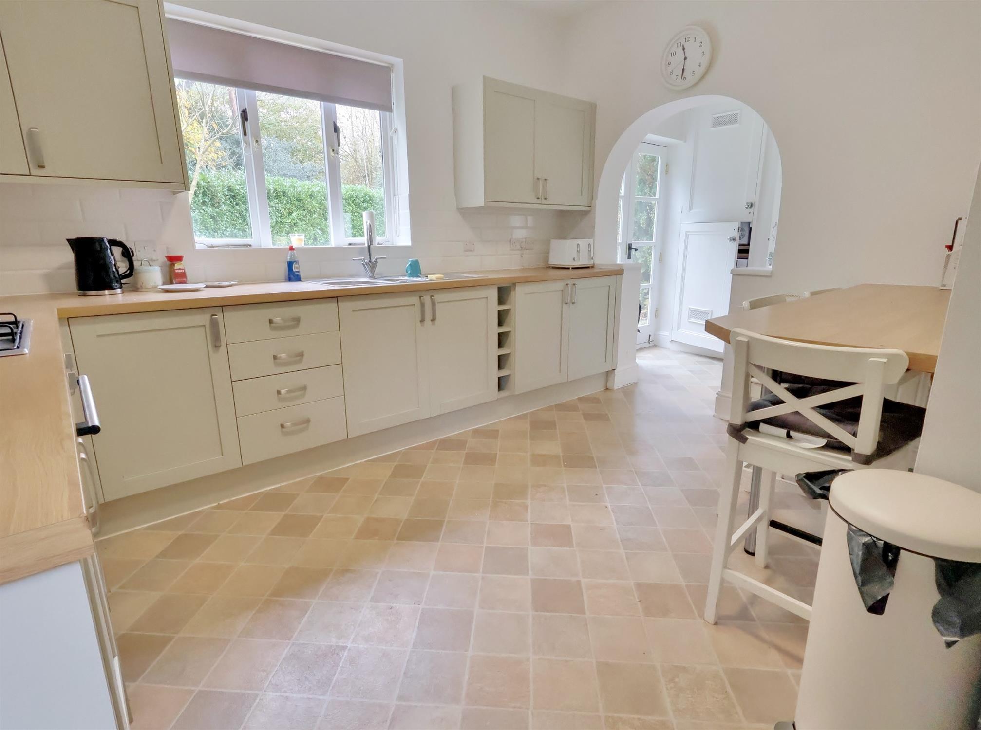 Double doors to garden. Built in storage with space and plumbing for washing machine and tumble dryer. Door into: