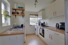 A range of wall and base cupboards with work surface over. Stainless steel sink with drainer. Four ring electric hob. Integrated oven. Plumbing for washing machine. Two double glazed windows. Door to side access.