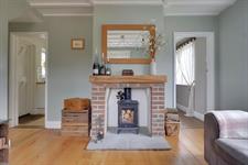 Wooden flooring. Wood burning stove. Store cupboard. Two double glazed windows.