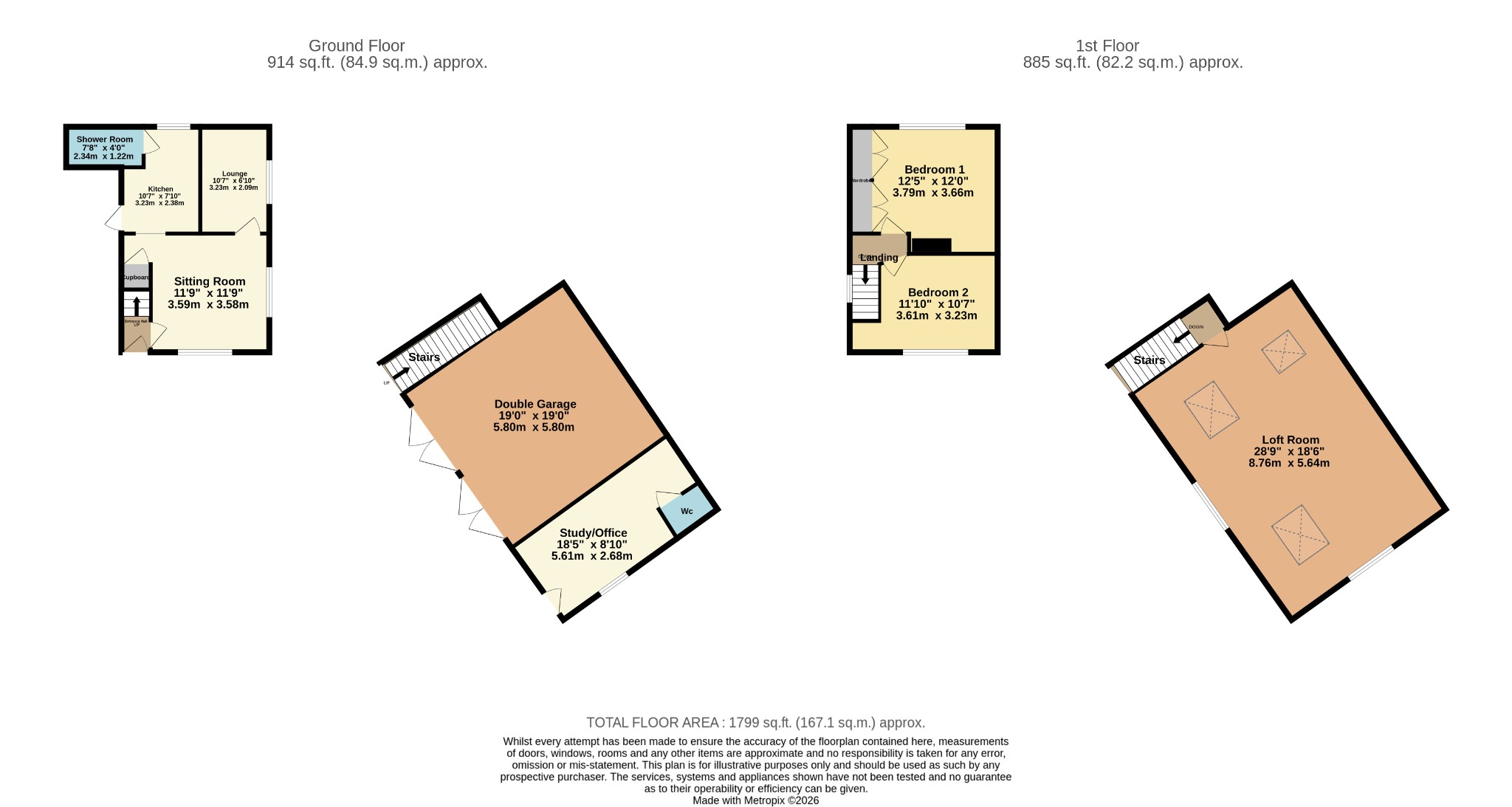 Secure electric gates provide access into the grounds, with a long driveway which expands into an area providing ample parking for many vehicles. Adjacent to the property is The Barn @ Amici which is a beautifully constructed double garage, with a pair of attractive wooden double doors. There is access to a separate office/study with a kitchenette area and WC. There are external stairs to take you to the loft room above The Barn, with lots of windows drawing in plenty of natural light and can be made habitable, subject to building regulations. The detached cottage provides two reception rooms, with the sitting room featuring a wood burning stove. There is a modern fitted kitchen and shower room which completes the ground floor accommodation. From the first floor landing is access to the two double bedrooms. An internal viewing is highly recommended to appreciate the accommodation on offer.