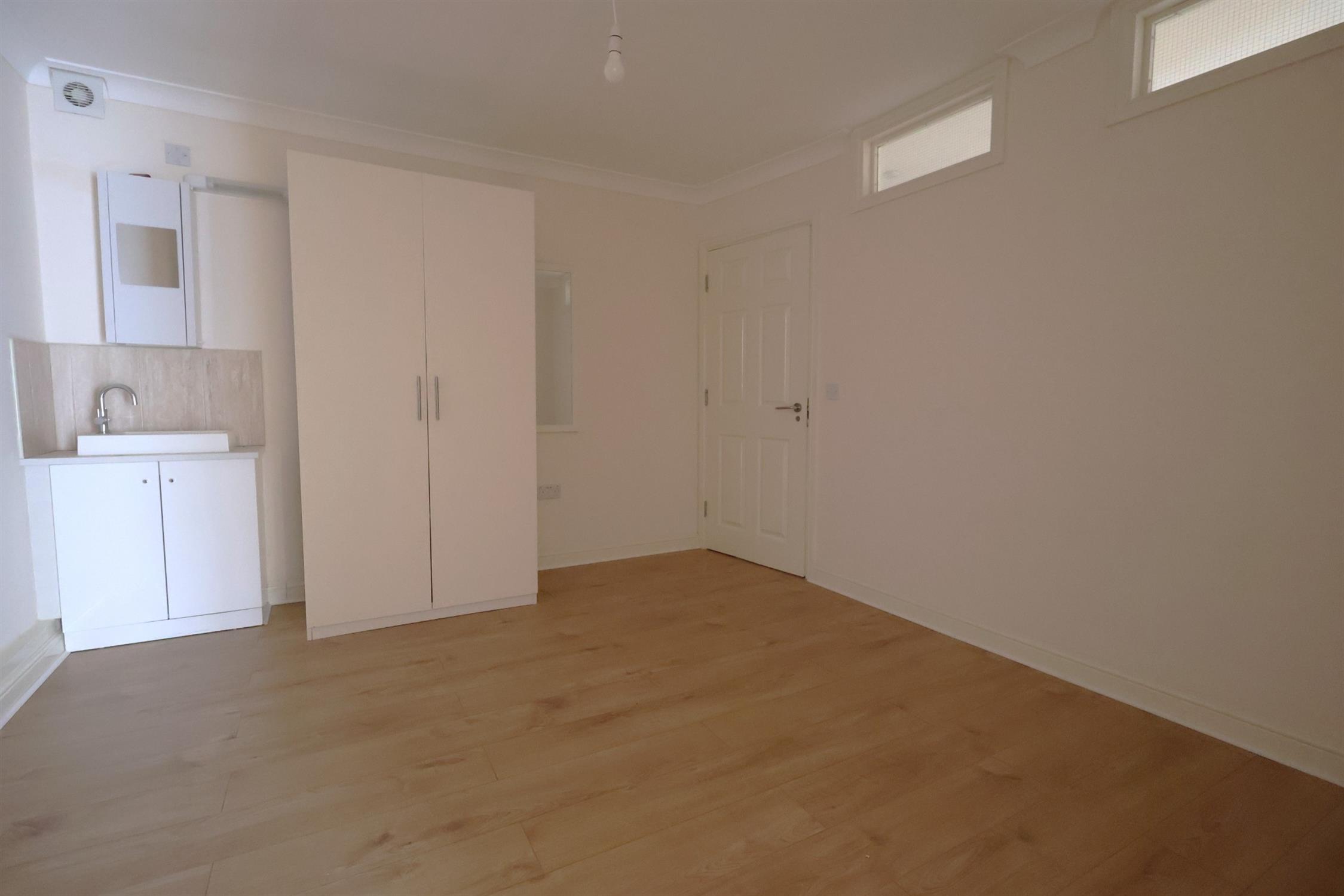 BEDROOM 2 - Double bedroom with windows to hallway. Free standing wardrobe. Hand basin with storage cupboards.