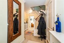 Coved ceiling, radiator with cover, cloaks cupboard, stairs rising to first floor landing, understairs storage cupboard, fitted carpet.