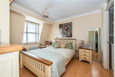 Coved ceiling, double glazed front aspect window and double glazed French doors onto balcony with sea views, radiator with cover, fitted carpet.