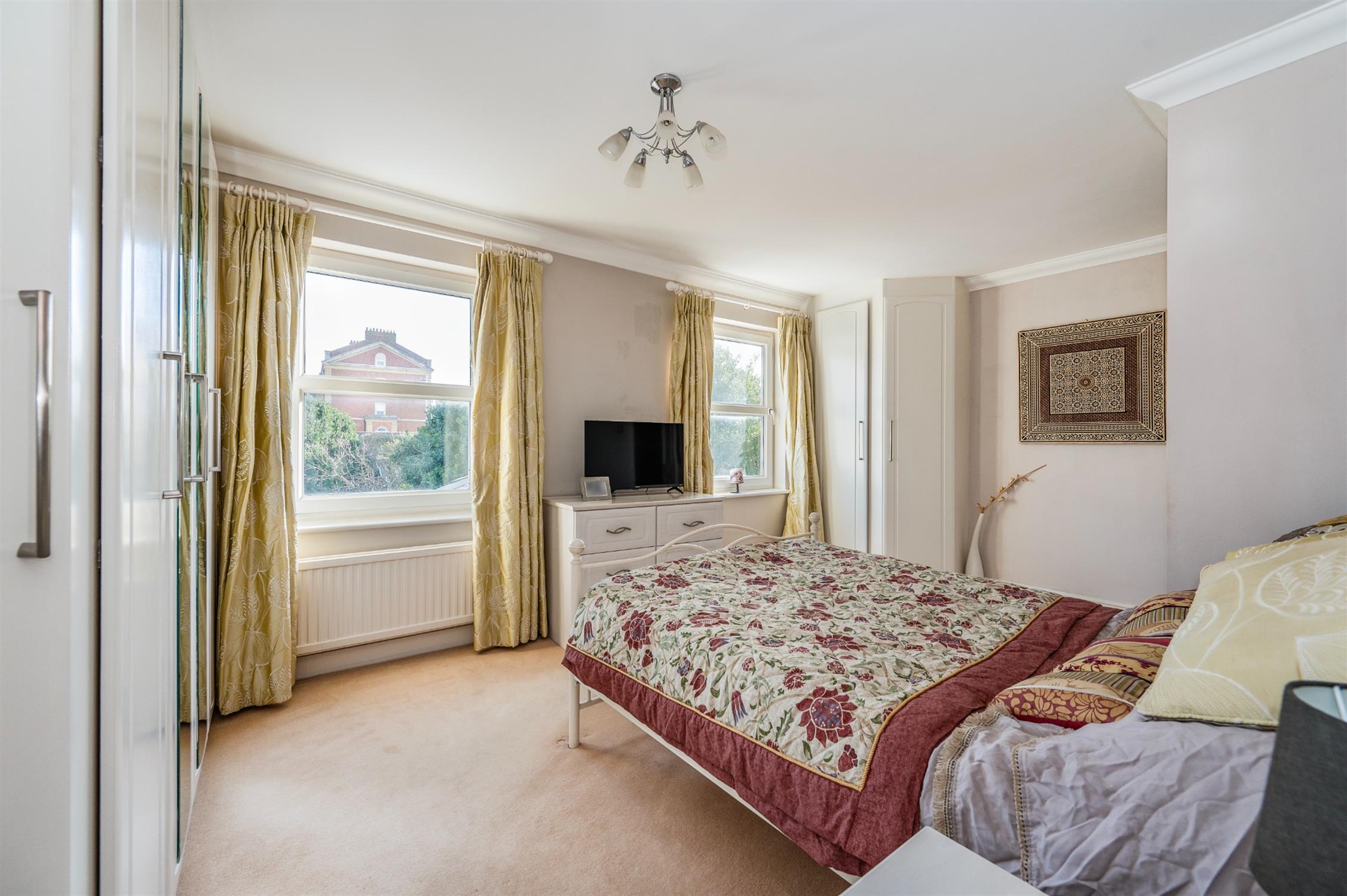 Coved ceiling, two double glazed rear aspect windows, two radiators, range of fitted wardrobes, fitted carpet.
