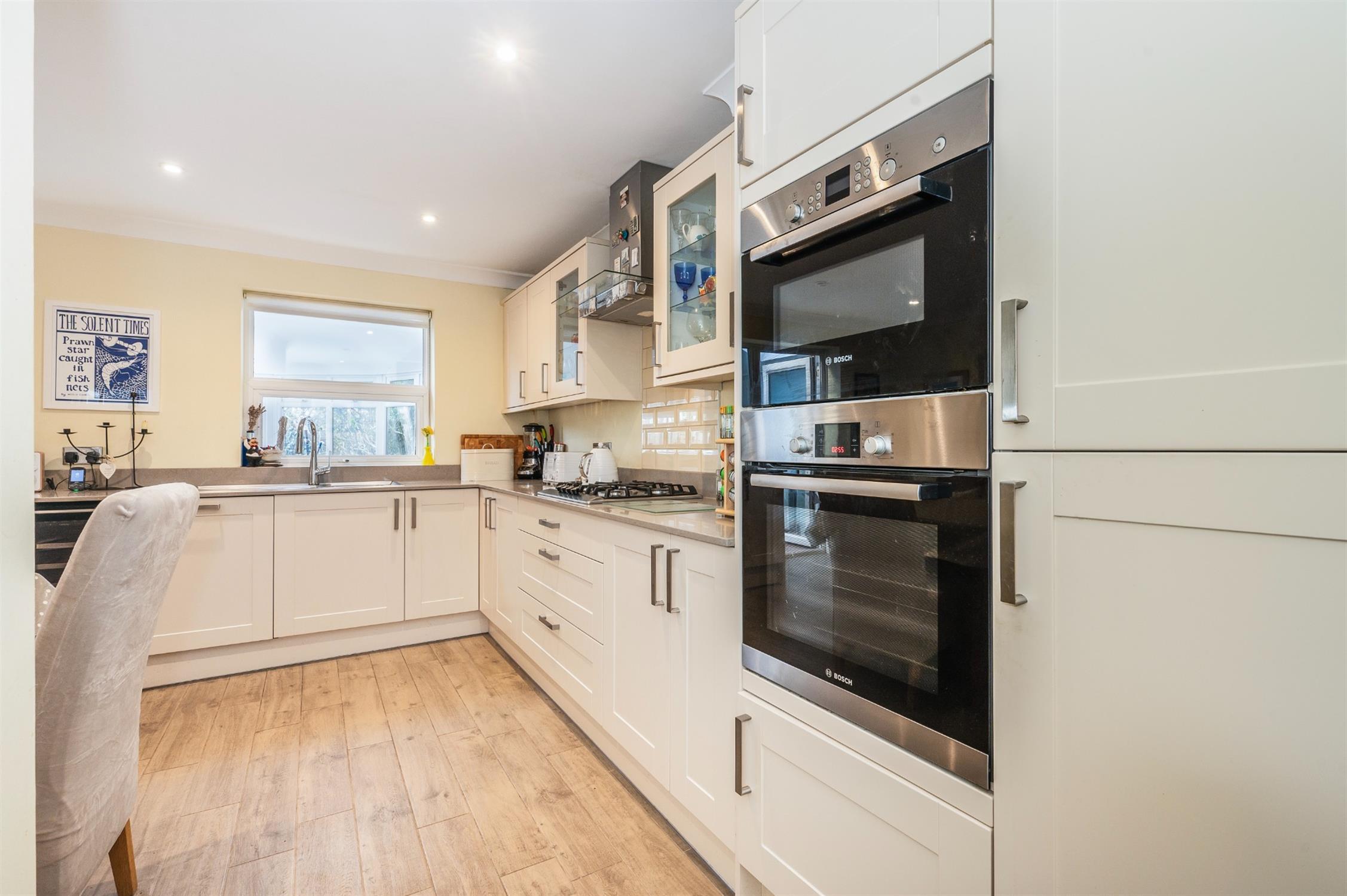 Situated within the highly sought-after Marine Court development in Southsea, this beautifully presented four-bedroom townhouse offers spacious and versatile accommodation arranged over three floors, complete with delightful sea views from the upper levels and the rare advantage of driveway parking and an integral garage. Tucked away in a quiet cul-de-sac just moments from the seafront, the property combines peaceful surroundings with an exceptional coastal lifestyle. A welcoming entrance hall leads to a convenient downstairs WC and a stylish, modern kitchen/dining room, thoughtfully designed to create a sociable heart of the home.