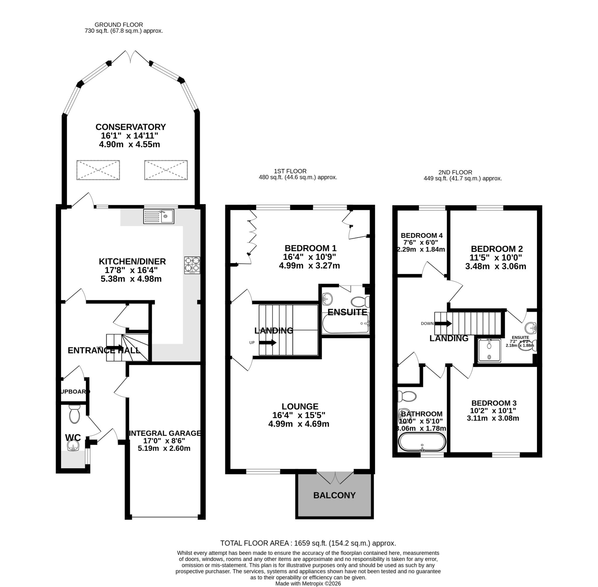 To the rear, a superb conservatory with a solid, insulated roof provides additional year-round living space, ideal as a family room, garden room or entertaining area. On the first floor, a spacious lounge enjoys elevated views towards the sea, and the generous principal bedroom suite benefits from a contemporary en-suite bathroom. The second floor hosts three further well-proportioned bedrooms, including one with its own en-suite shower room, alongside a modern family bathroom. From this level, the sea views become even more impressive, offering a wonderful coastal backdrop. Externally, the property benefits from a private driveway leading to an integral garage, providing both parking and useful storage. Well maintained and tastefully presented throughout, this attractive townhouse is perfectly positioned just a short stroll from the vibrant seafront, local amenities and transport links that Southsea has to offer.