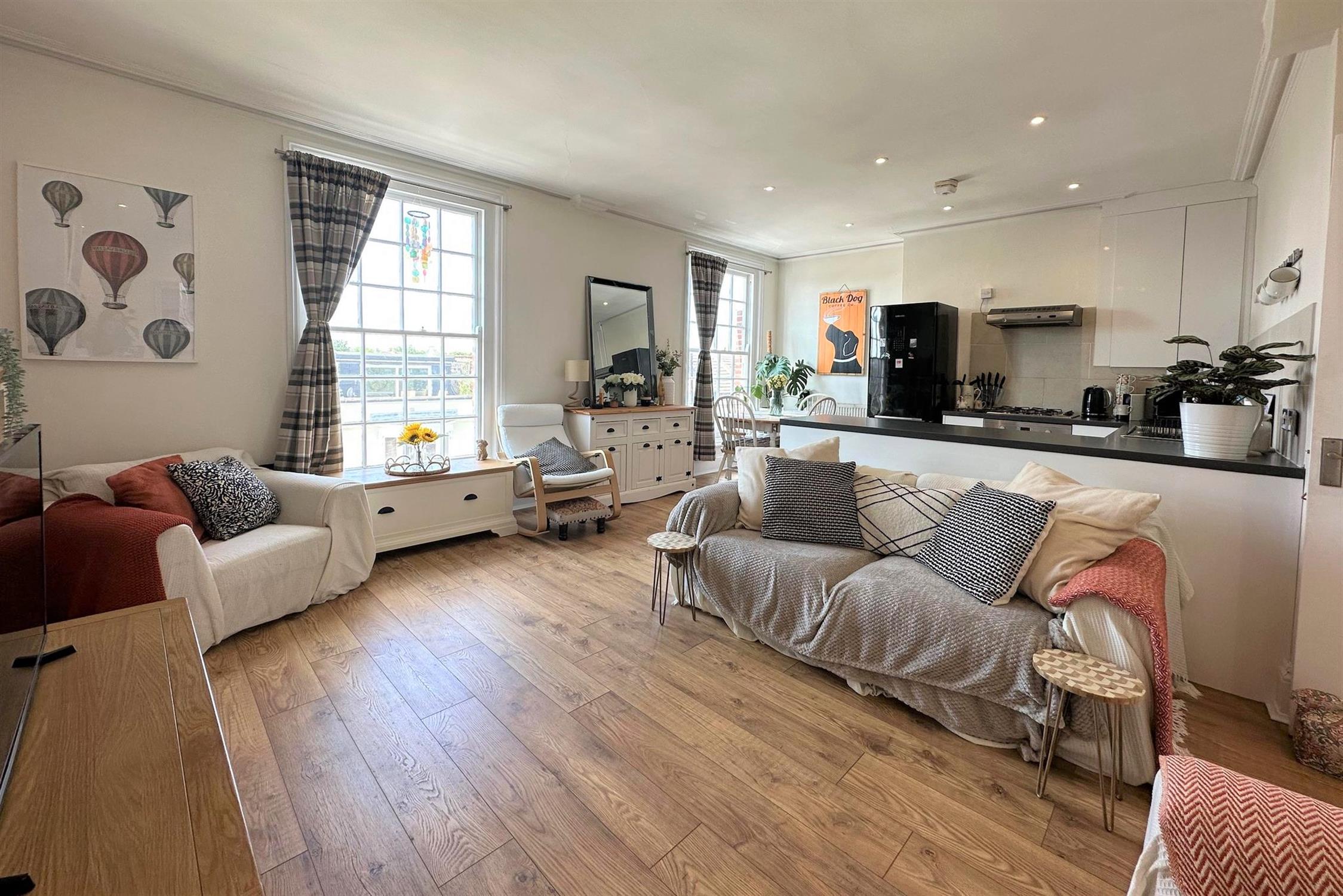 Two-bedroom apartment located on the second floor of an attractive period building with views over the surrounding rooftops, the apartment is very well-lit by large sash windows which surround the property. There is an open-plan kitchen / living room, brand new fitted kitchen with appliances. The two bedrooms are both comfortable doubles with plenty of space for bedroom furniture. Three-piece family bathroom. The property further benefits from gas central heating.