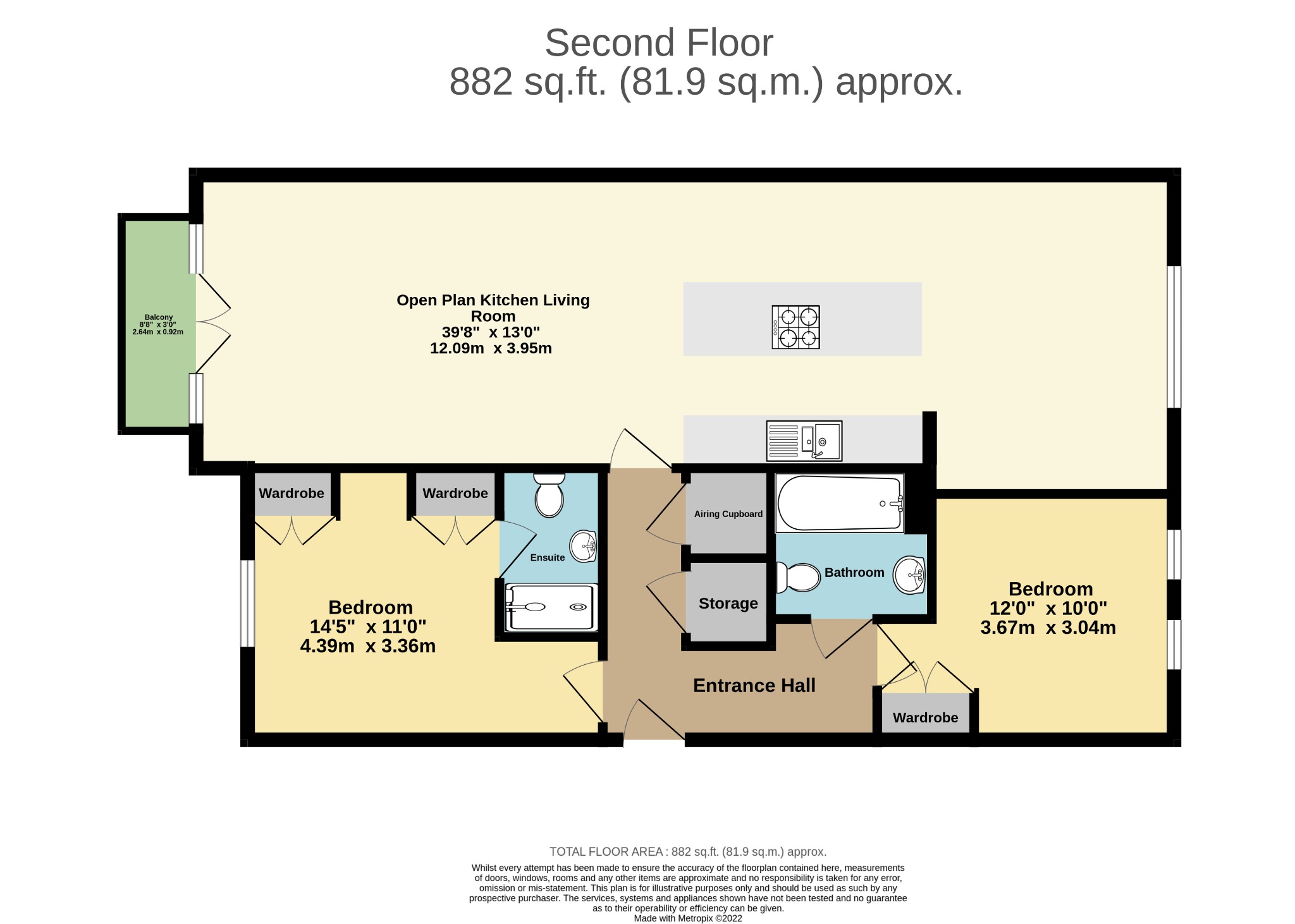 Doors to open plan kitchen/living room, both bedrooms and bathroom. Storage cupboard housing electrical fuse board. Airing cupboard with electric boiler within. Radiator. Smooth walls and ceiling.