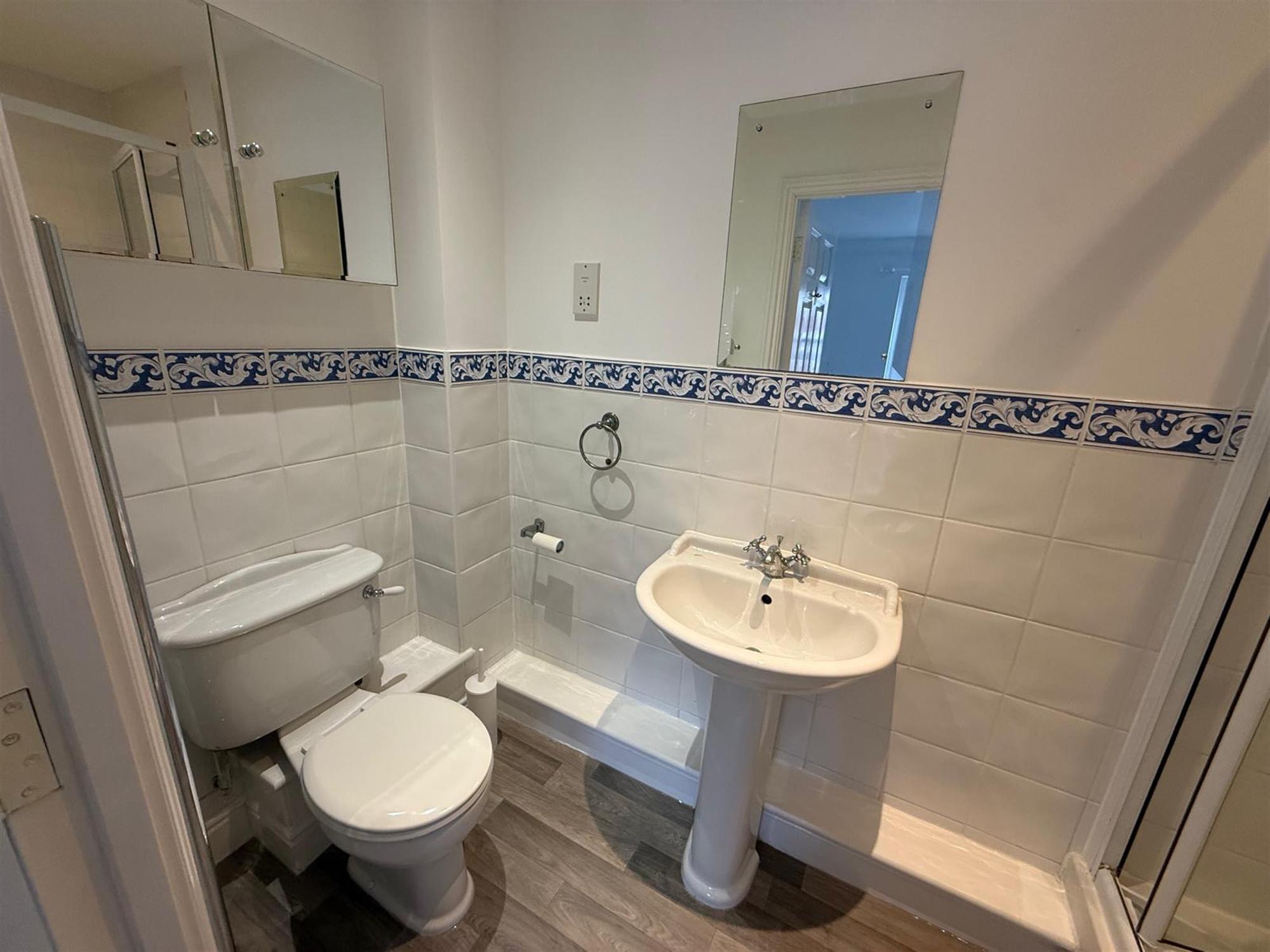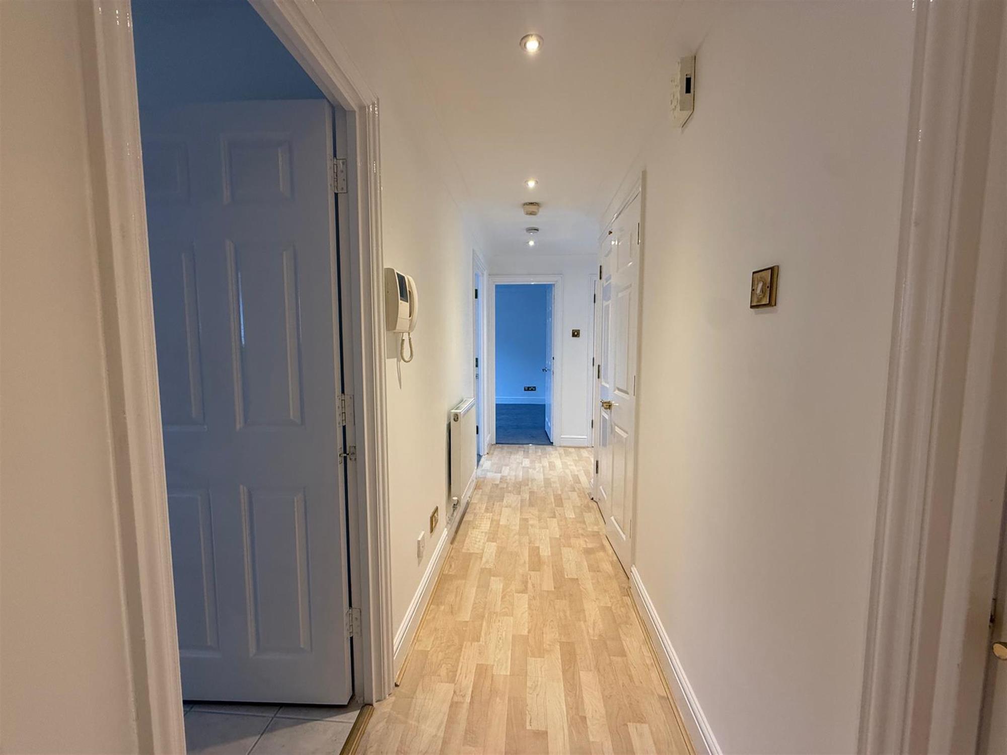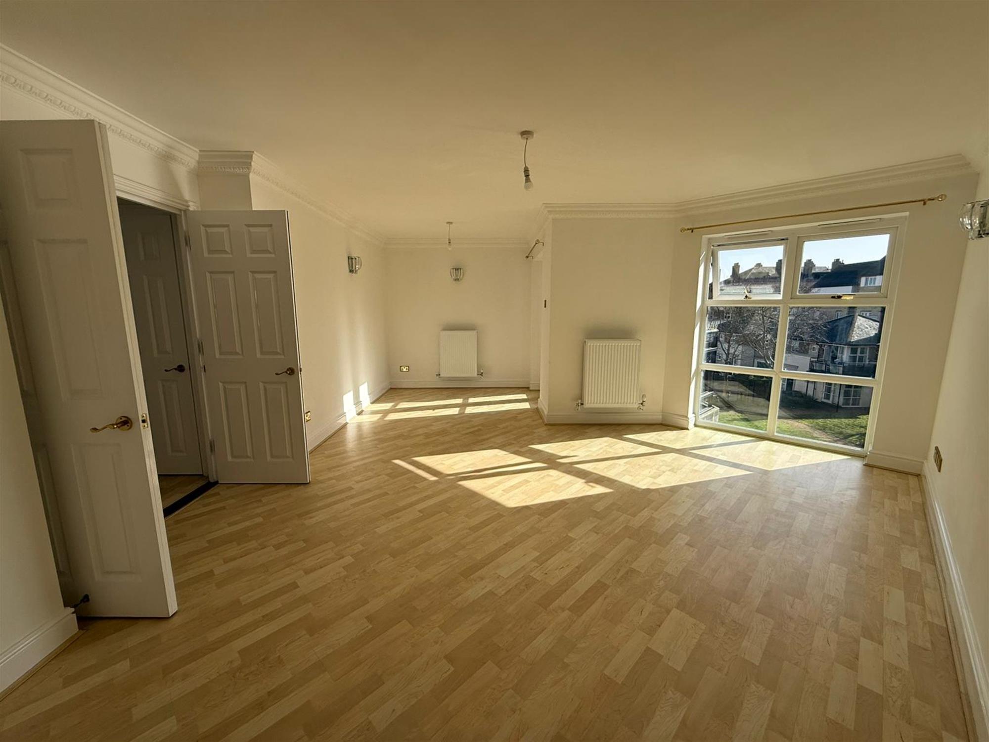 The communal entrance hall has stairs and a lift to all floors. The kitchen is spacious. The living/dining room is again a generous size with French doors allowing ample light into the space. The master bedroom offers built-in storage and benefits from a further set of French doors. Bedroom Two is a double and has a large window allowing natural light. The ensuite is fitted with a shower, basin, and toilet, and the second bathroom is fitted with a bath, toilet, and basin.