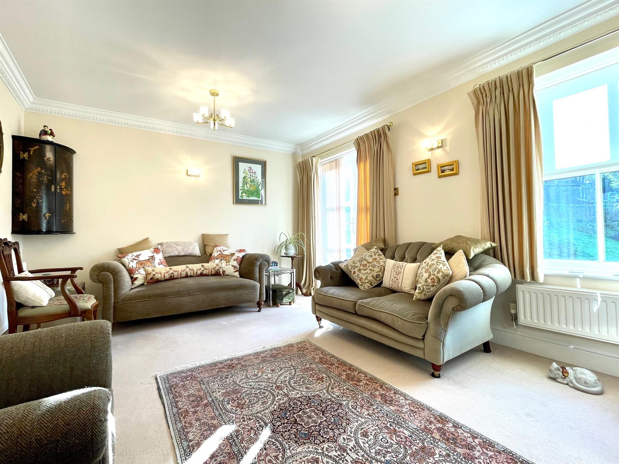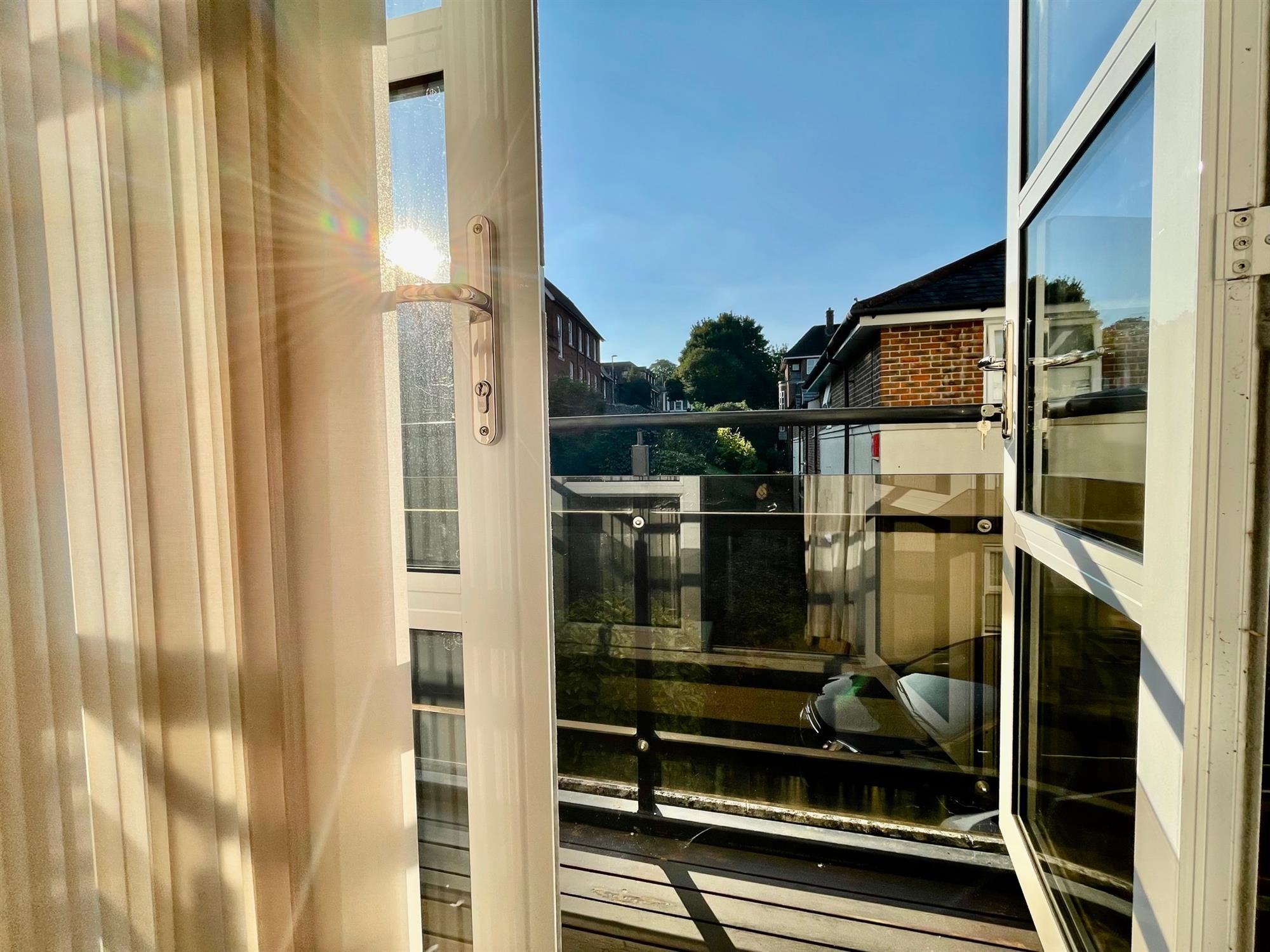 On the first floor, the spacious living room can be found. This is a terrific size, stretching across an impressive 15'2. A large window and double doors leading to a balcony offer ample natural light into the space. The master bedroom is fitted with substantial built-in wardrobes and also offers an ensuite bathroom fitted with bath, vanity unit, toilet, and heated towel rail.