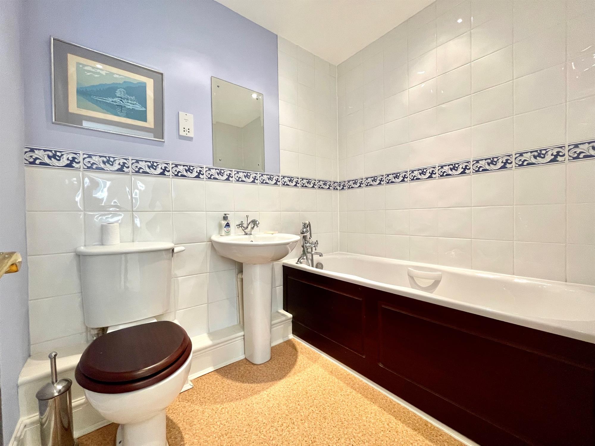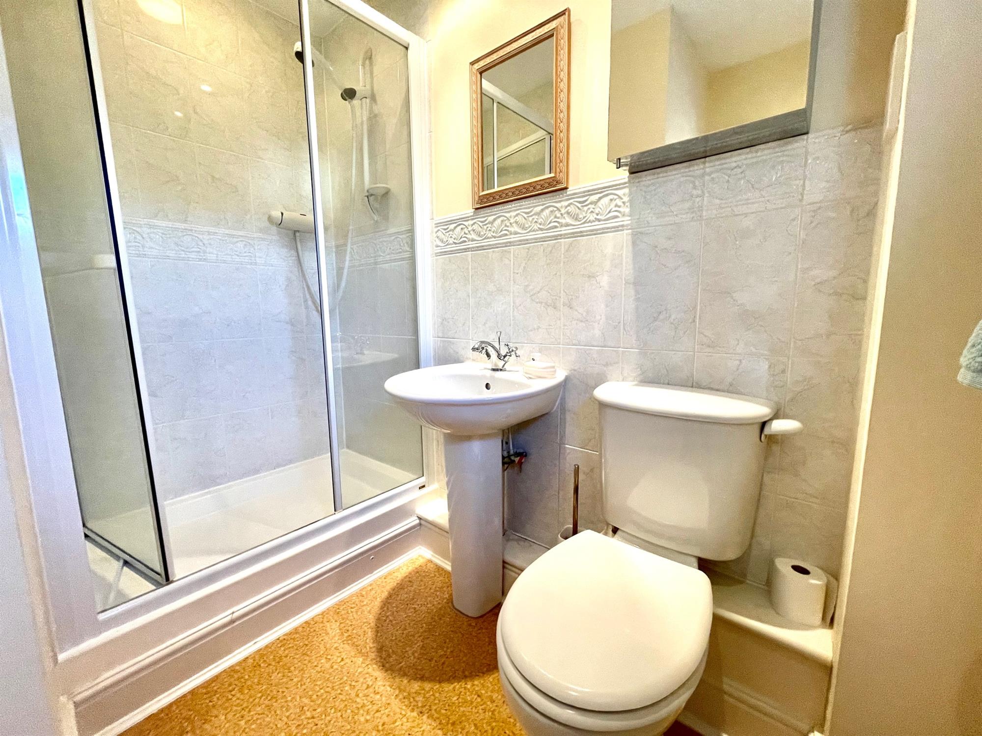 On the second floor there are three further bedrooms, one of which offers a built-in wardrobe and ensuite shower room. There is also a family bathroom which is a white suite of bath, toilet, and handbasin.