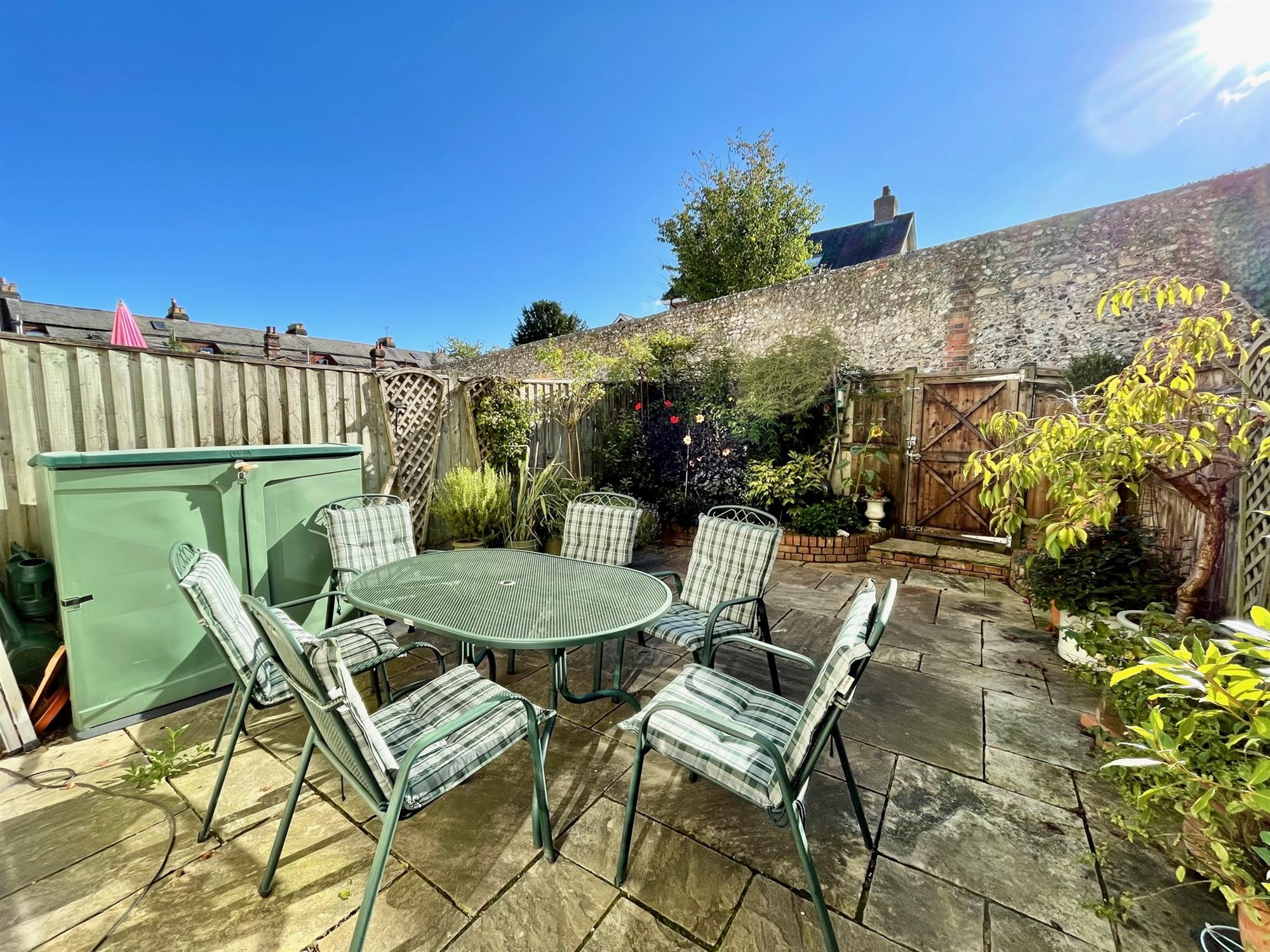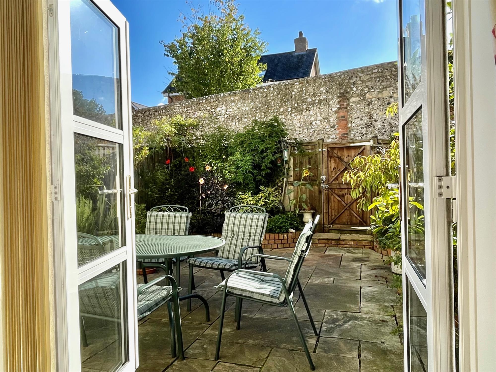 Outside, the sunny courtyard garden can be accessed both via the kitchen and from a gate at the end. The property further benefits from one allocated parking space