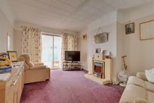 Aluminium sliding doors leading to conservatory. Wall mounted night storage heater. Electric, coal effect fire set in tiled surround.