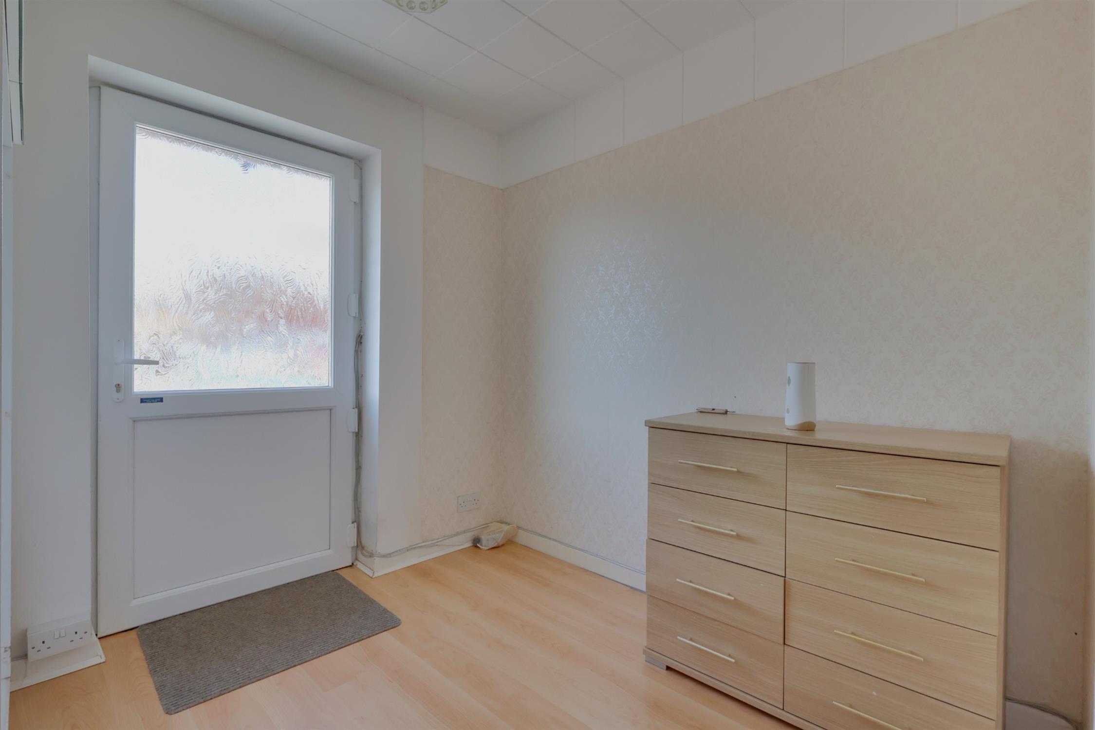 Various electric points and fitted cupboard. UPVC glazed door to front aspect.
