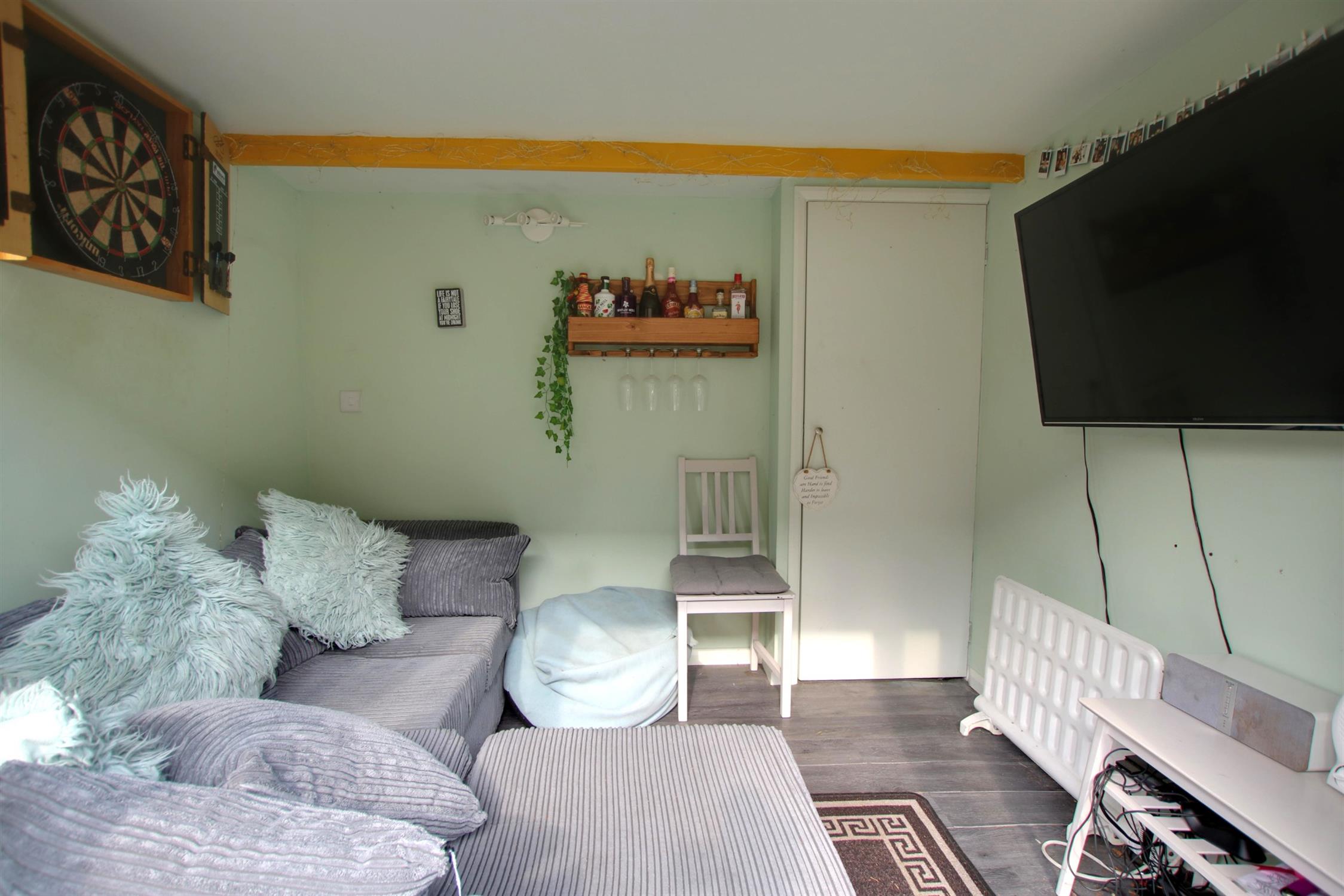 The rear garden is fully enclosed with paved patio seating areas and a timber summer house with windows to front and side aspects, power and light and storage cupboard.