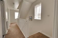 Wood effect laminate flooring, radiator, door leading to the downstairs WC.