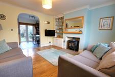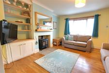 Wooden flooring. Double-glazed window to front aspect. Radiator. Fireplace with log burner. Understairs cupboard
