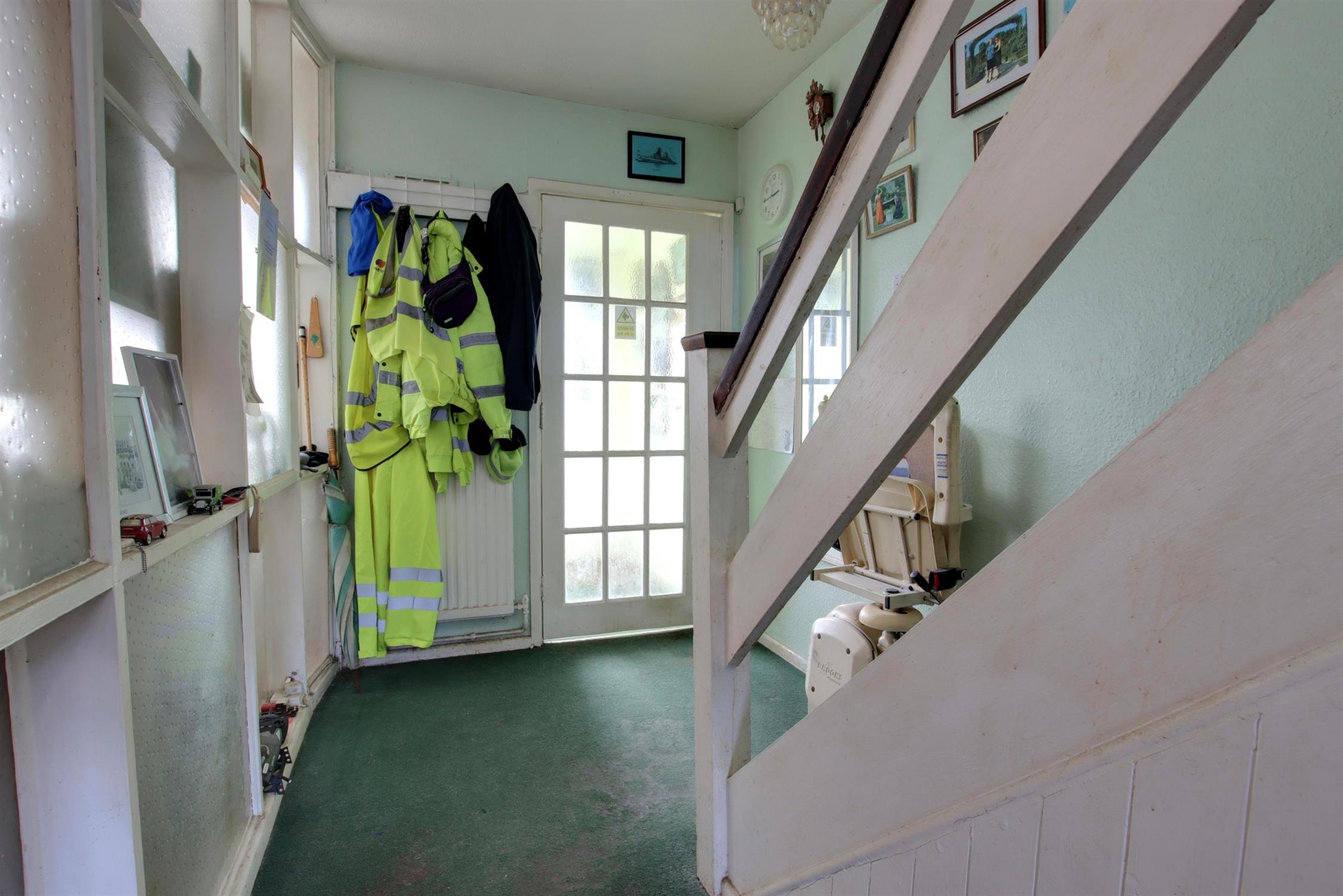 HALLWAYStaircase rising to the first floor. Radiator.