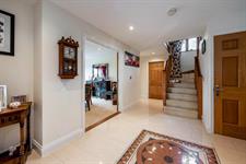 Spacious and welcoming entrance, featuring a tiled floor and the staircase leading to the first floor.