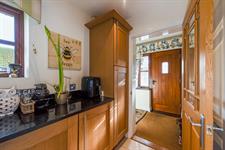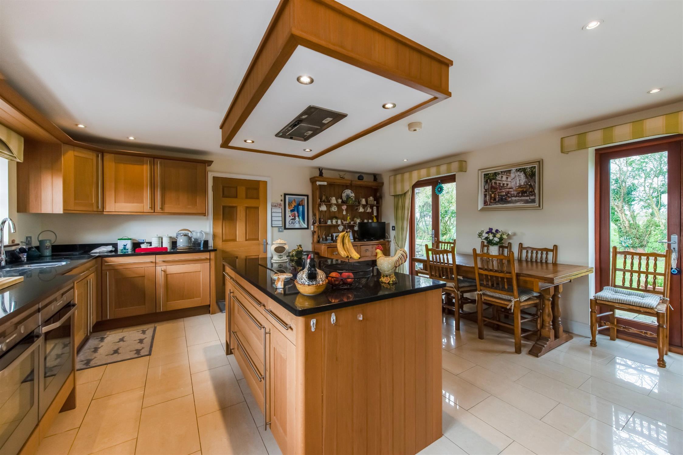 Door leading main house utility. Stairs to the first floor. Opening to the breakfast area, with double opening glazed doors to the garden. Inset lighting. Internal door to the double garage. Worksurface with space under for washing machine. Wall unit. Door to: