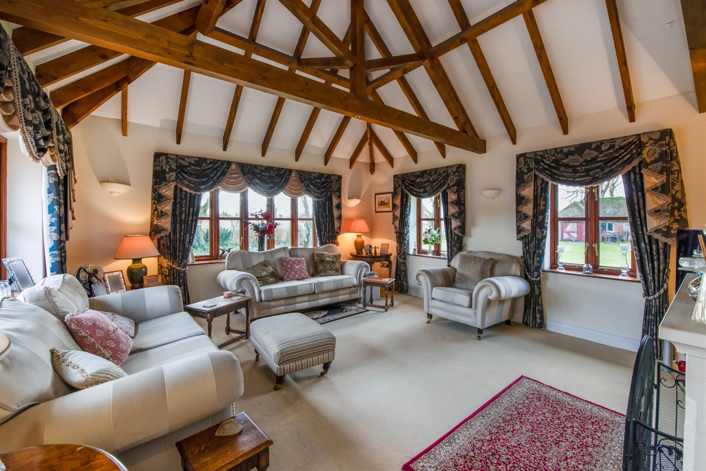 OUTSIDE: The grounds extend to approximately 0.75 of an acre and nestle seamlessly within the surrounding rural landscape, bordered by mature trees and hedging. A private driveway is approached off Stocks Lane, leading to a walled entrance and parking area. The entrance continues to a versatile detached garage/outbuilding, providing additional parking and useful storage. A gravel driveway leads to the property, bordered by established planting and extensive lawns, and continues to the main entrance with additional parking area, turning and access to the attached double garage with twin opening doors. The lawns extend to the side and rear of the property, complemented by paved terrace areas ideal for outdoor entertaining, all enjoying delightful views across the surrounding countryside. There is also a convenient garden cloakroom with WC and wash hand basin, which is accessed from the rear garden.