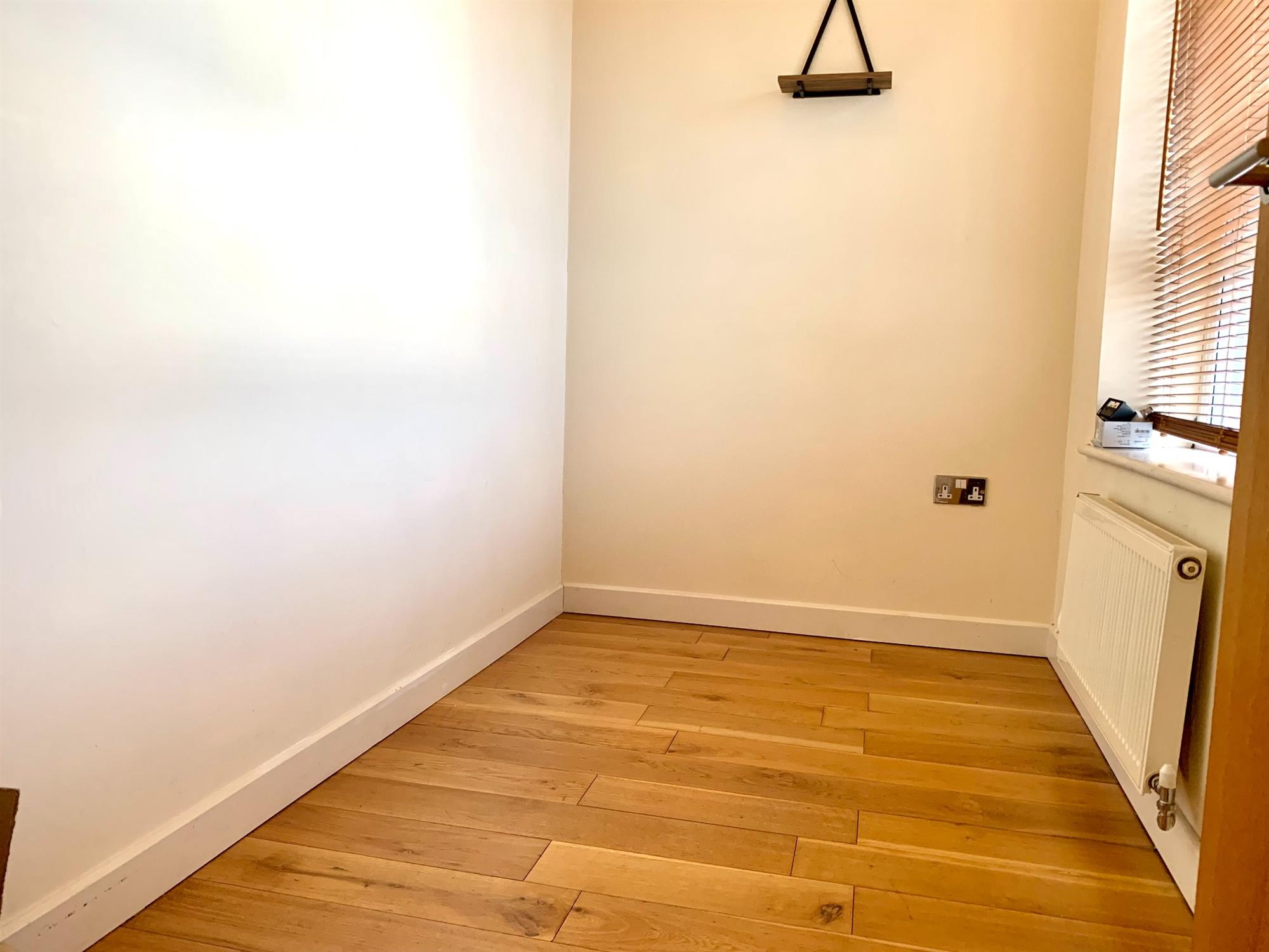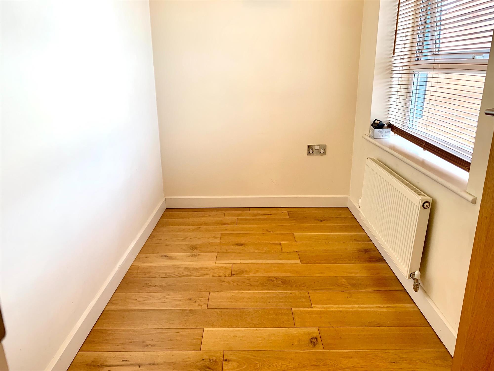 A single bedroom with a window to front and wood flooring.