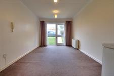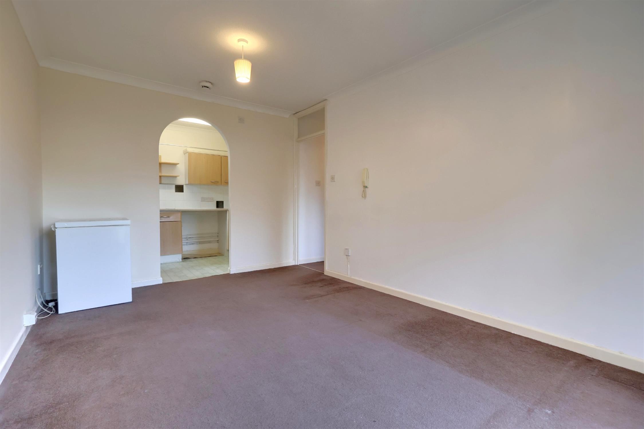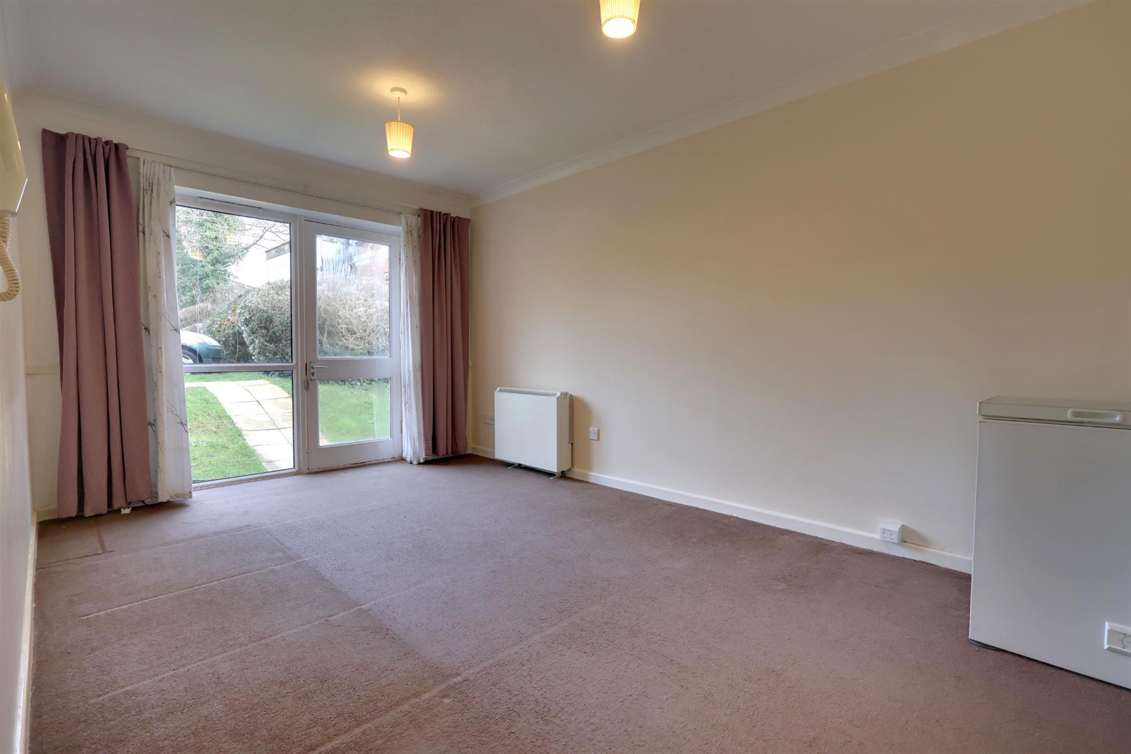 Living / Dining RoomCarpeted flooring, electric storage heaters, double-glazed door and window to front aspect.