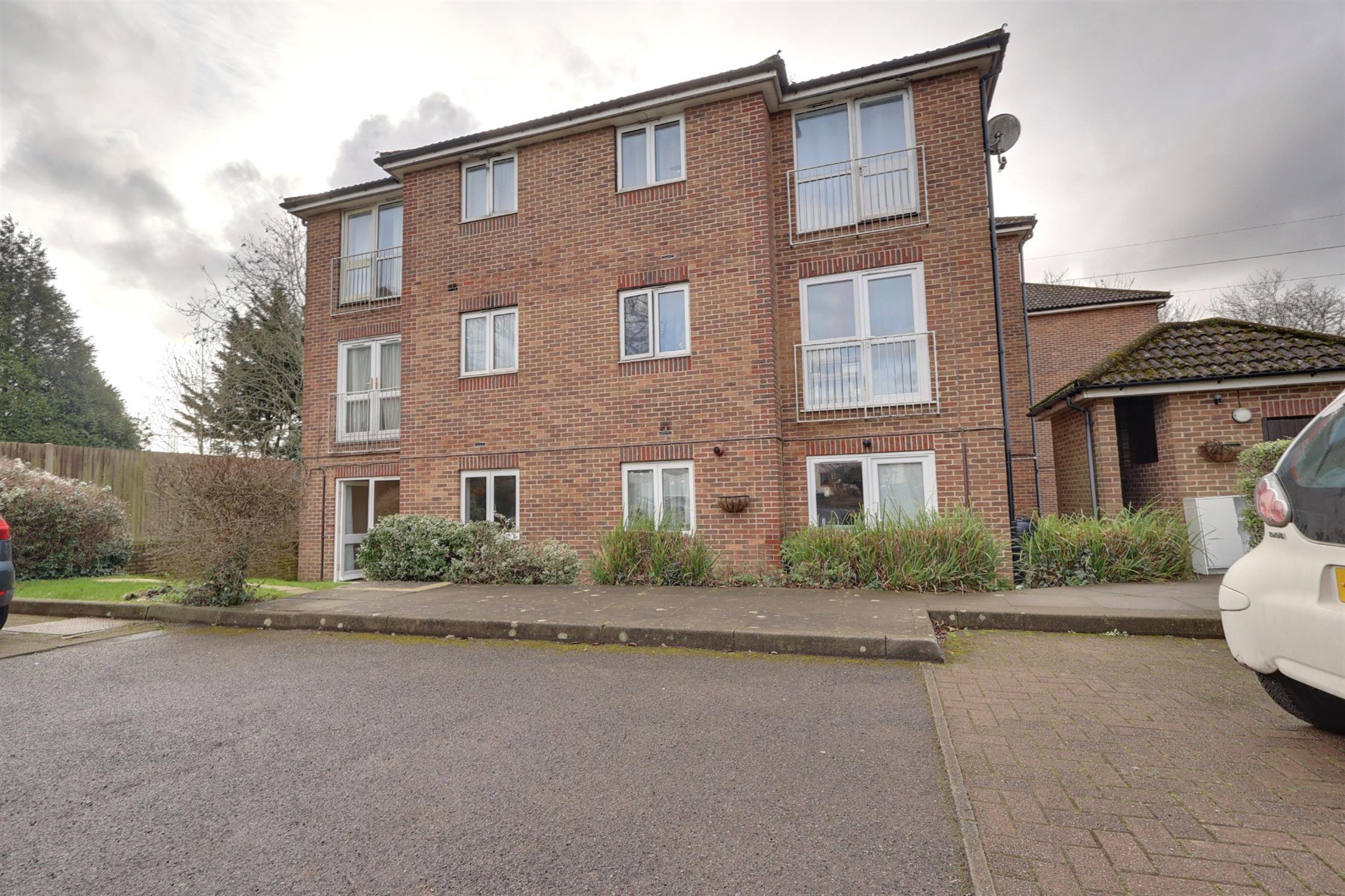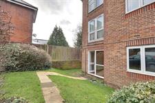 Communal grounds, pathway to living room door entrance, parking.