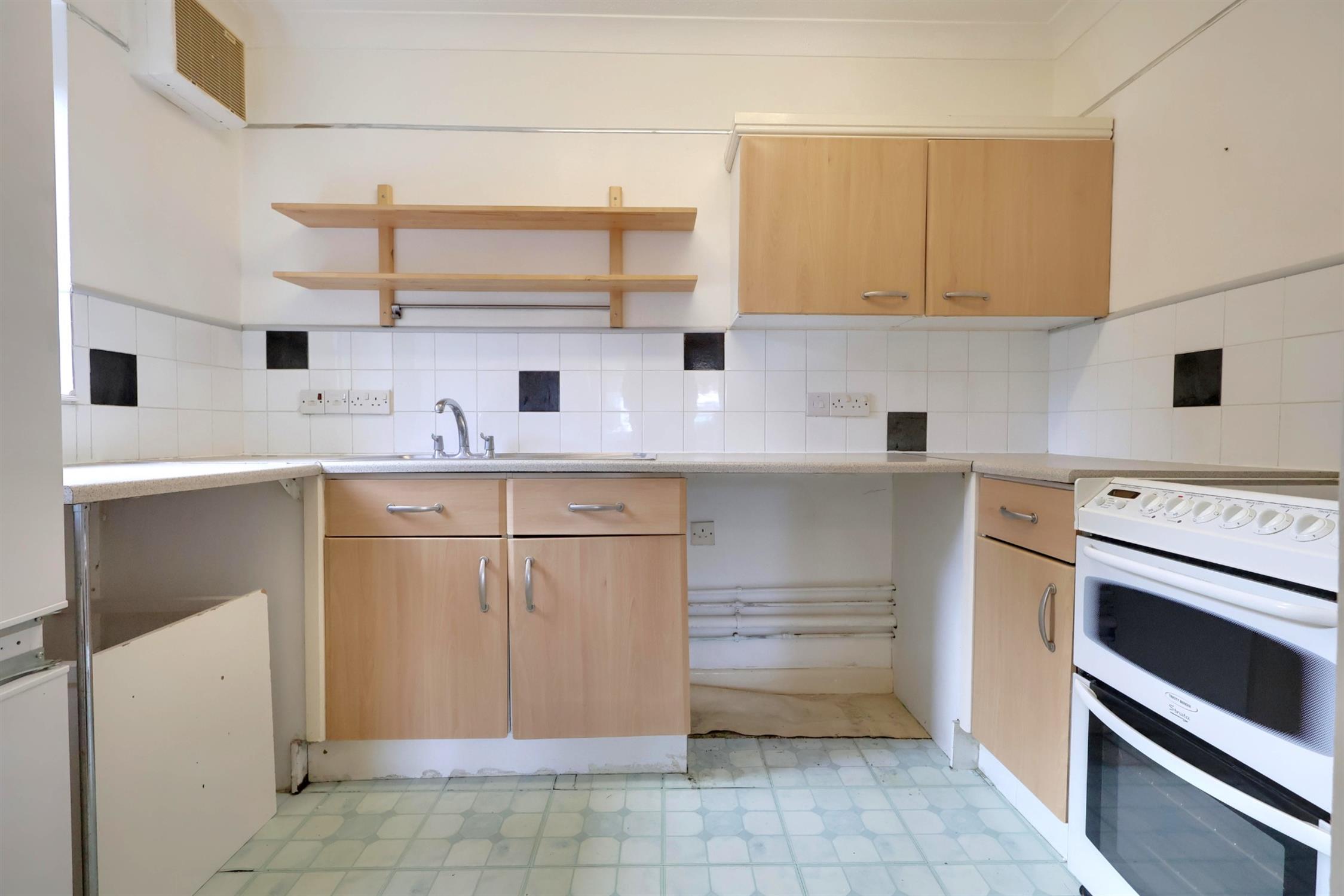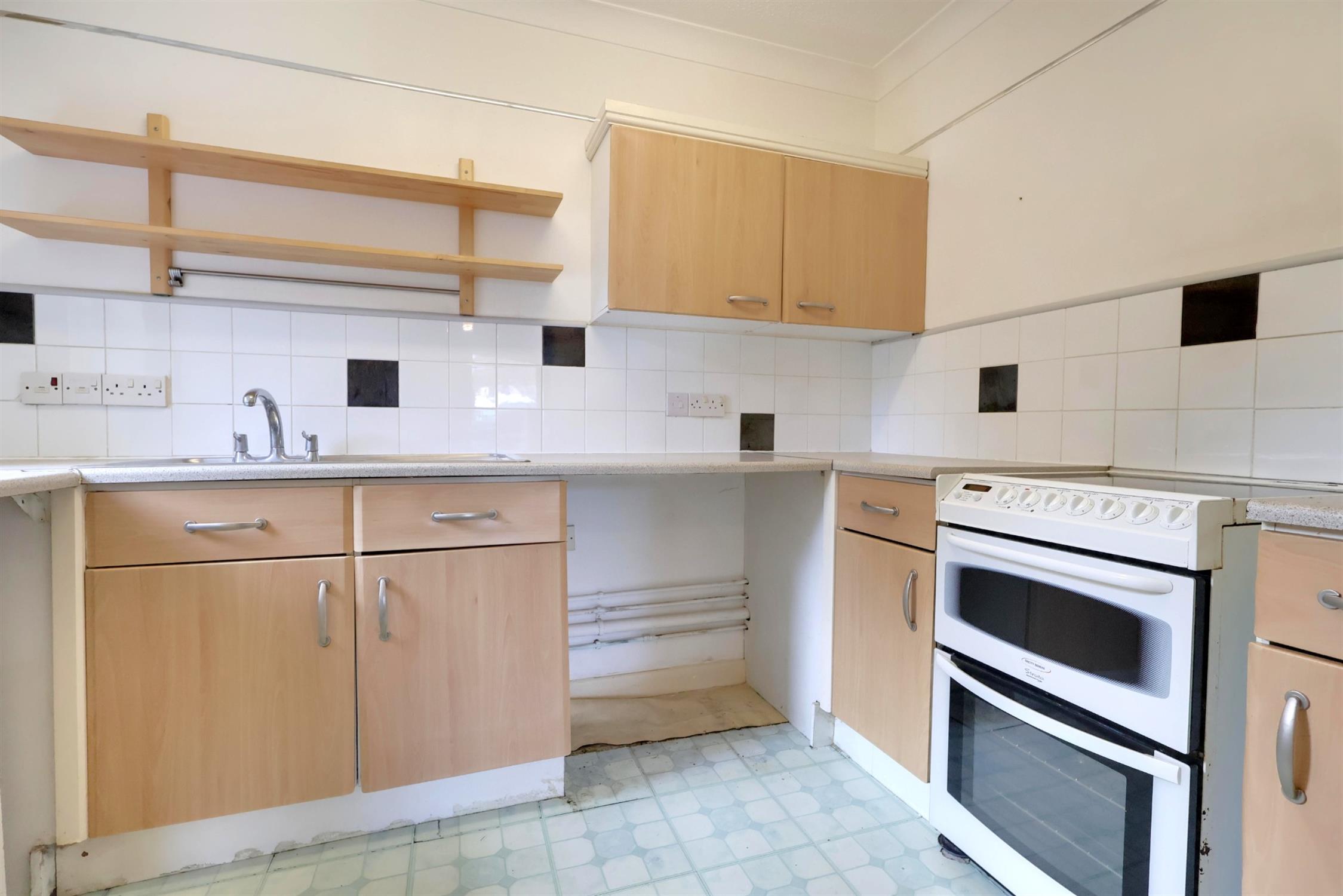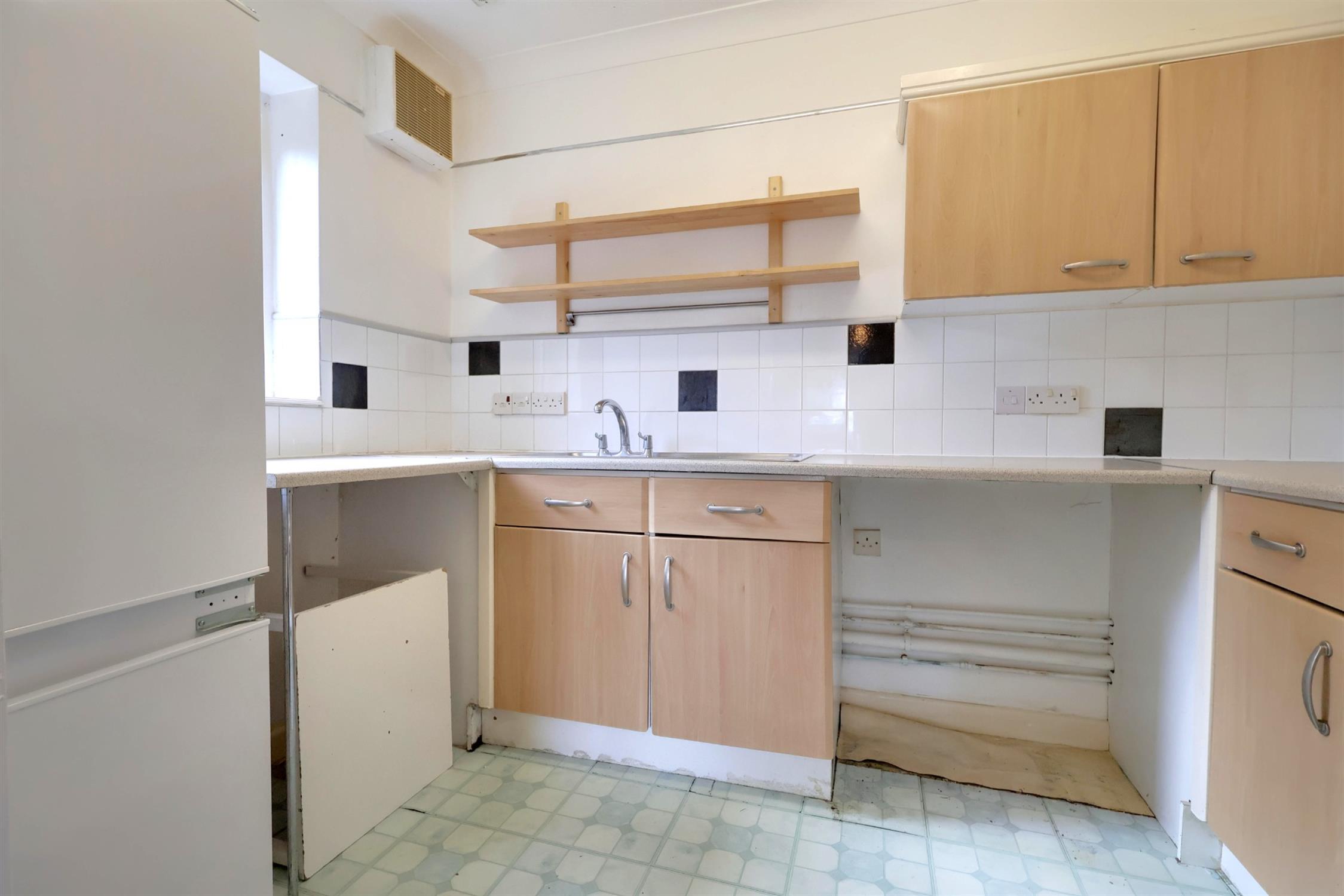 Kitchen Range of eye and base level units, space for a fridge freezer and washing machine, double-glazed window to side aspect, laminate flooring.