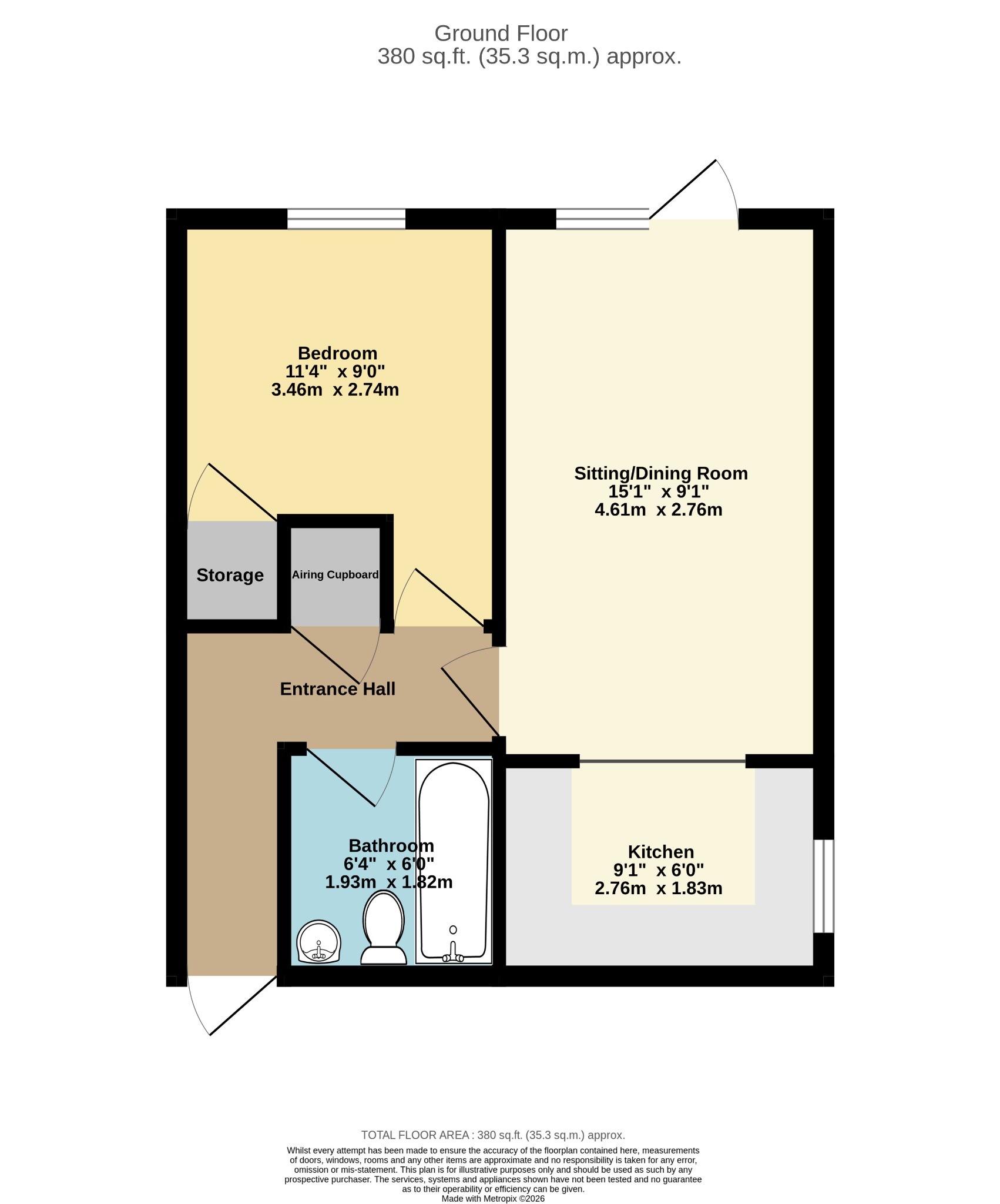 BedroomCarpeted flooring, storage cupboard, electric storage heater, double-glazed window to front aspect.