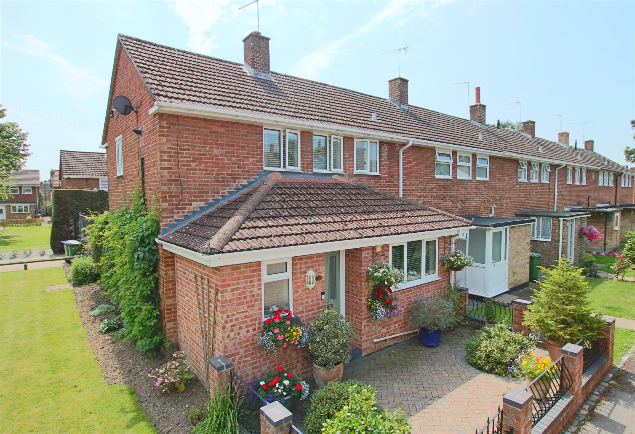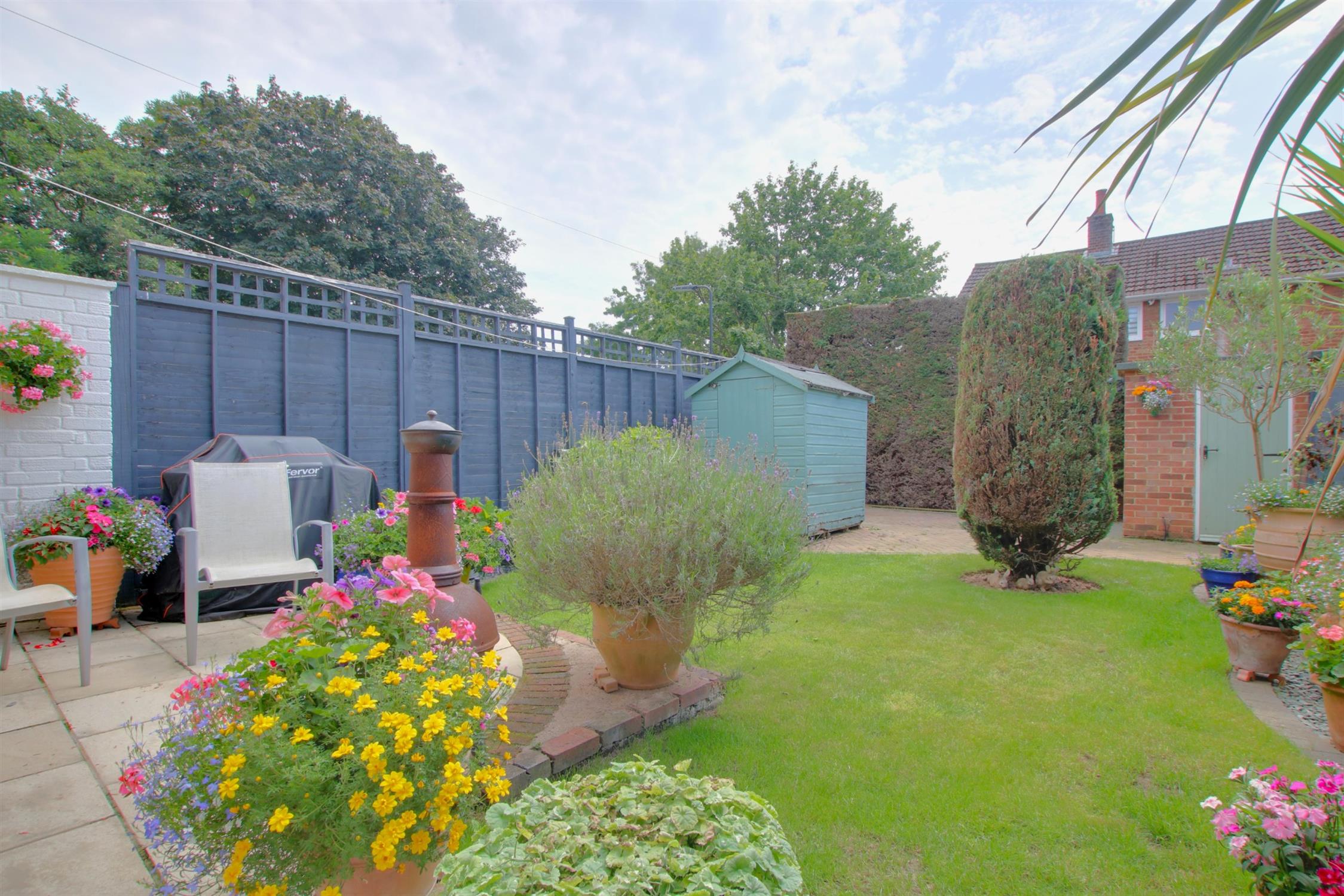 The rear garden enjoys a southerly aspect and is mainly laid to lawn with borders and patio area. Two storage sheds. Paved area to the rear for parking.