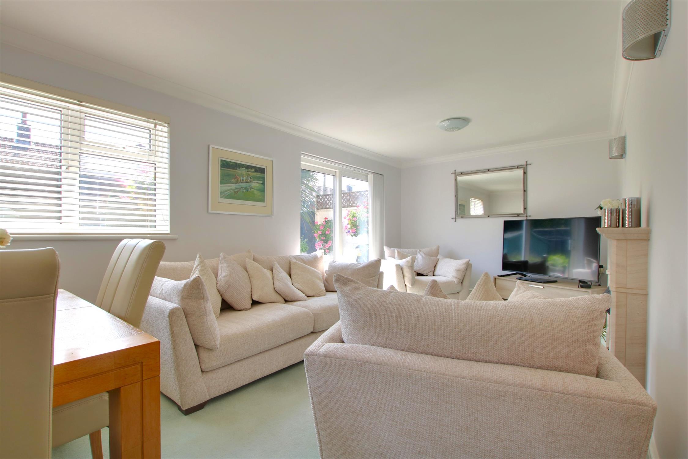 Carpeted. Electric fire. Sliding door to rear garden. Two double-glazed windows to side and rear aspect. Radiator.