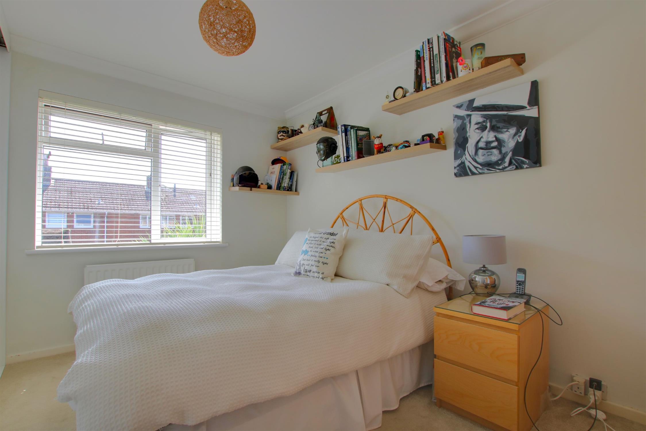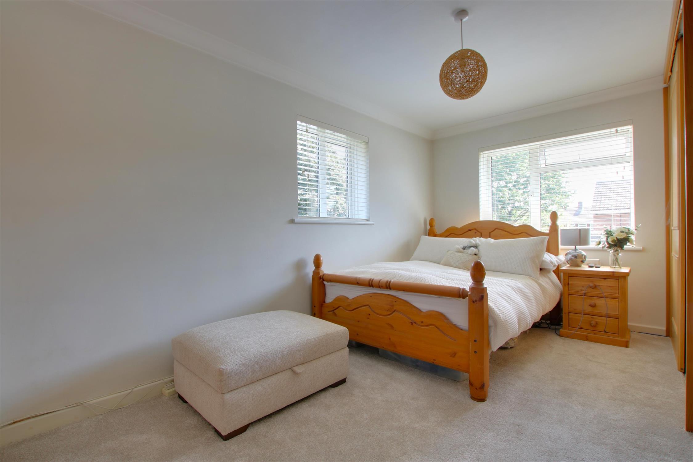 Carpeted. Doors to all rooms. Access to loft. Two double-glazed windows to front aspect.