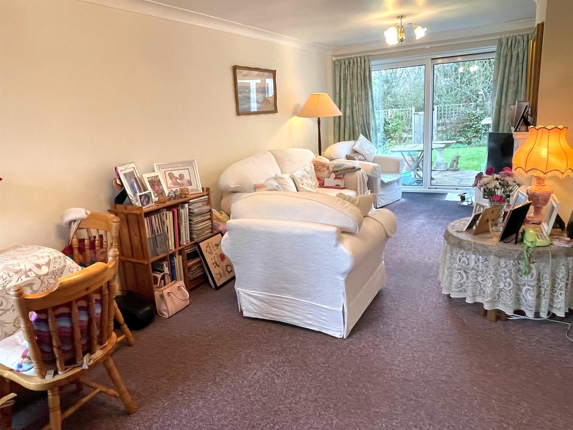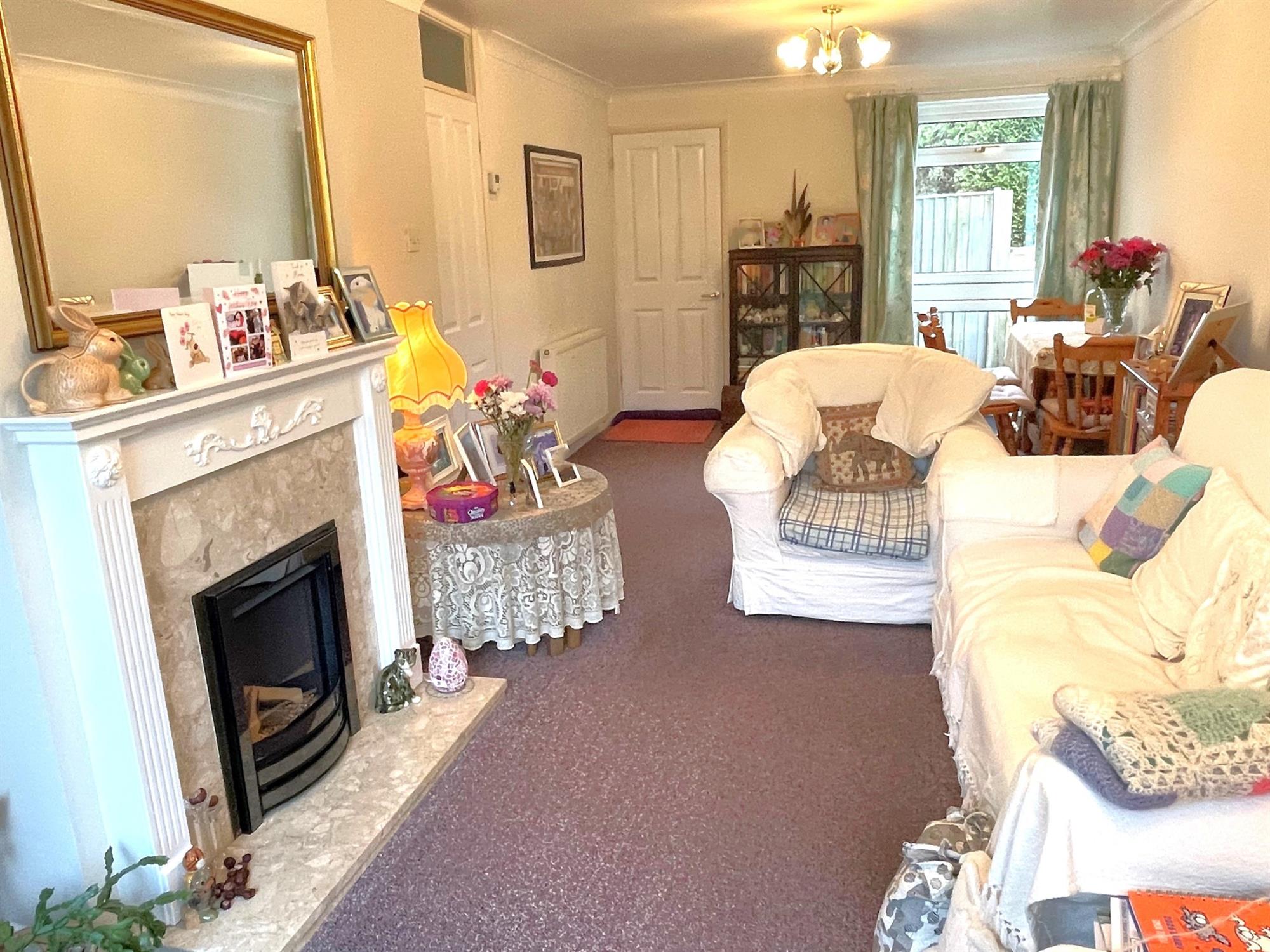 Window to front. Television point. Feature fireplace with fitted gas fire and mantle over. Radiator. Sliding patio door to garden. Door into: