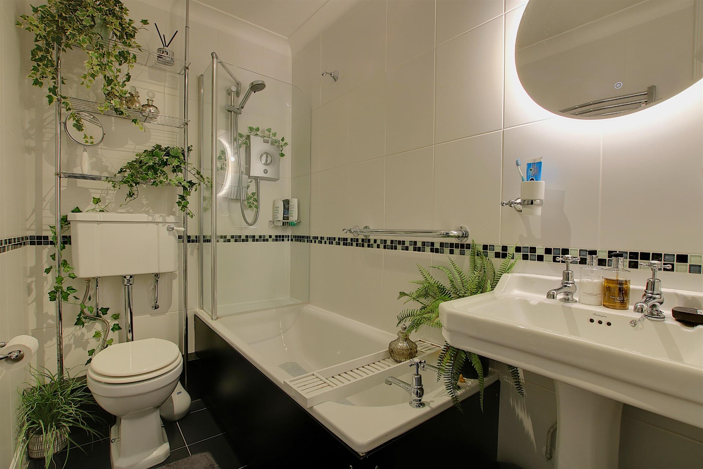 Refitted with an attractive period style suite comprising panel enclosed bath with shower over and folding screen, wash basin, low-level W.C., extractor fan, heated towel rail, tiled walls and floor.