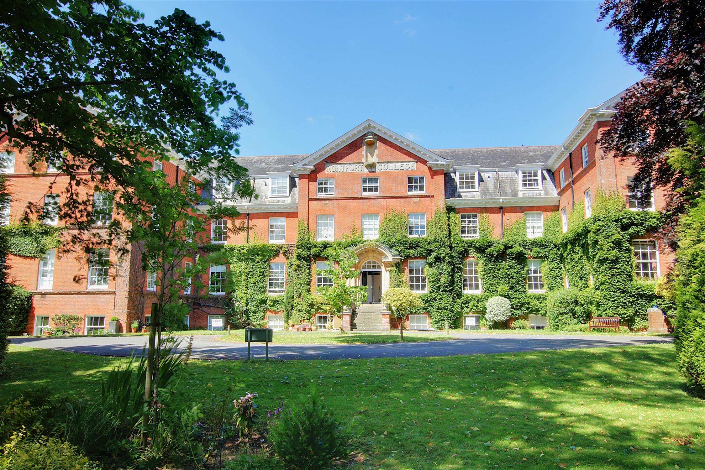 Montfort College stands in beautifully maintained park-like gardens which are principally laid to lawn with a number of mature specimen trees, flowering plants and shrubs. There is ample parking to both the front and rear of the building for residents and visitors, and the apartment also has a single garage in a block to the rear with up-and-over door and useful loft storage space. In addition there is a communal bin store.