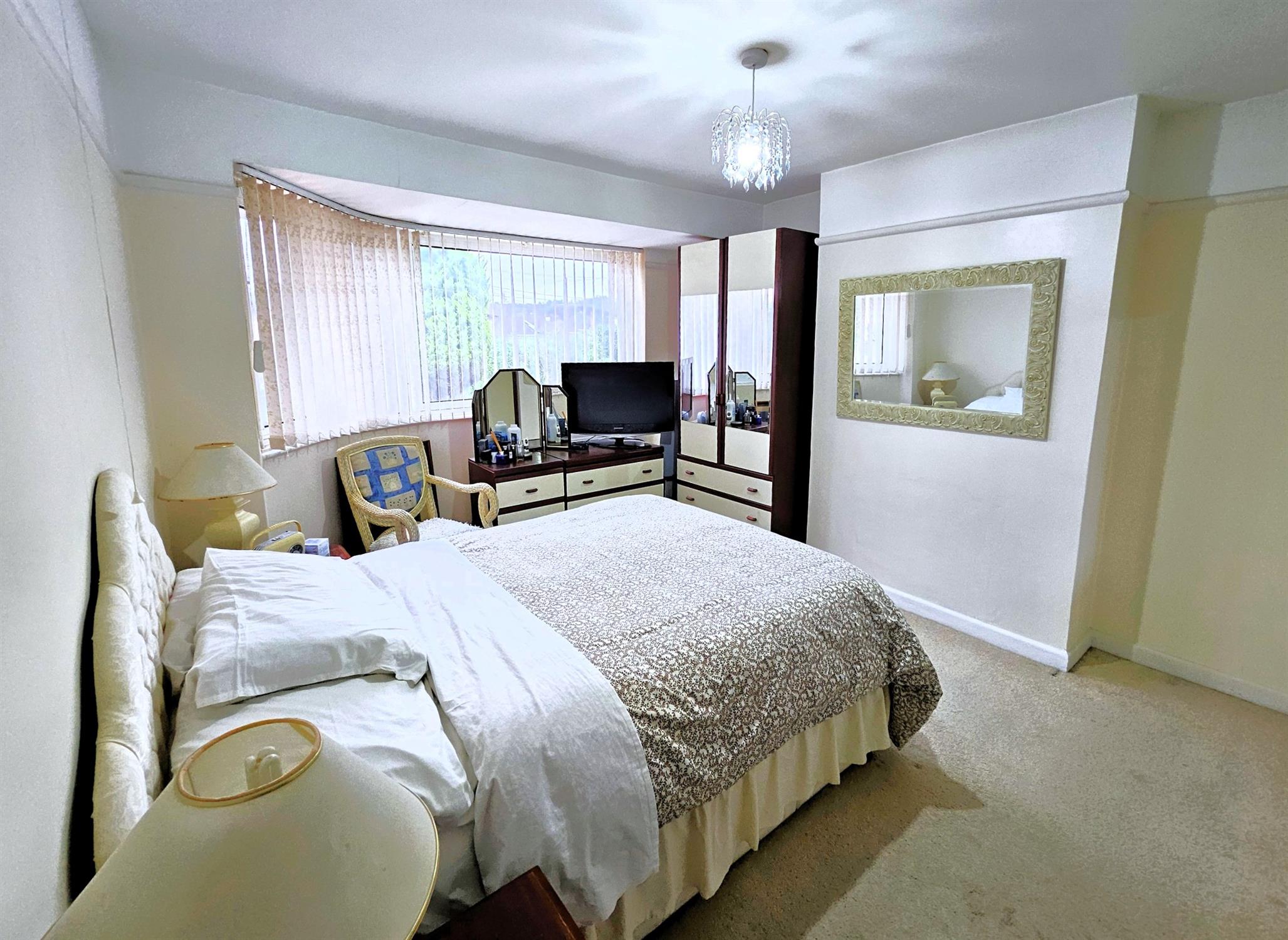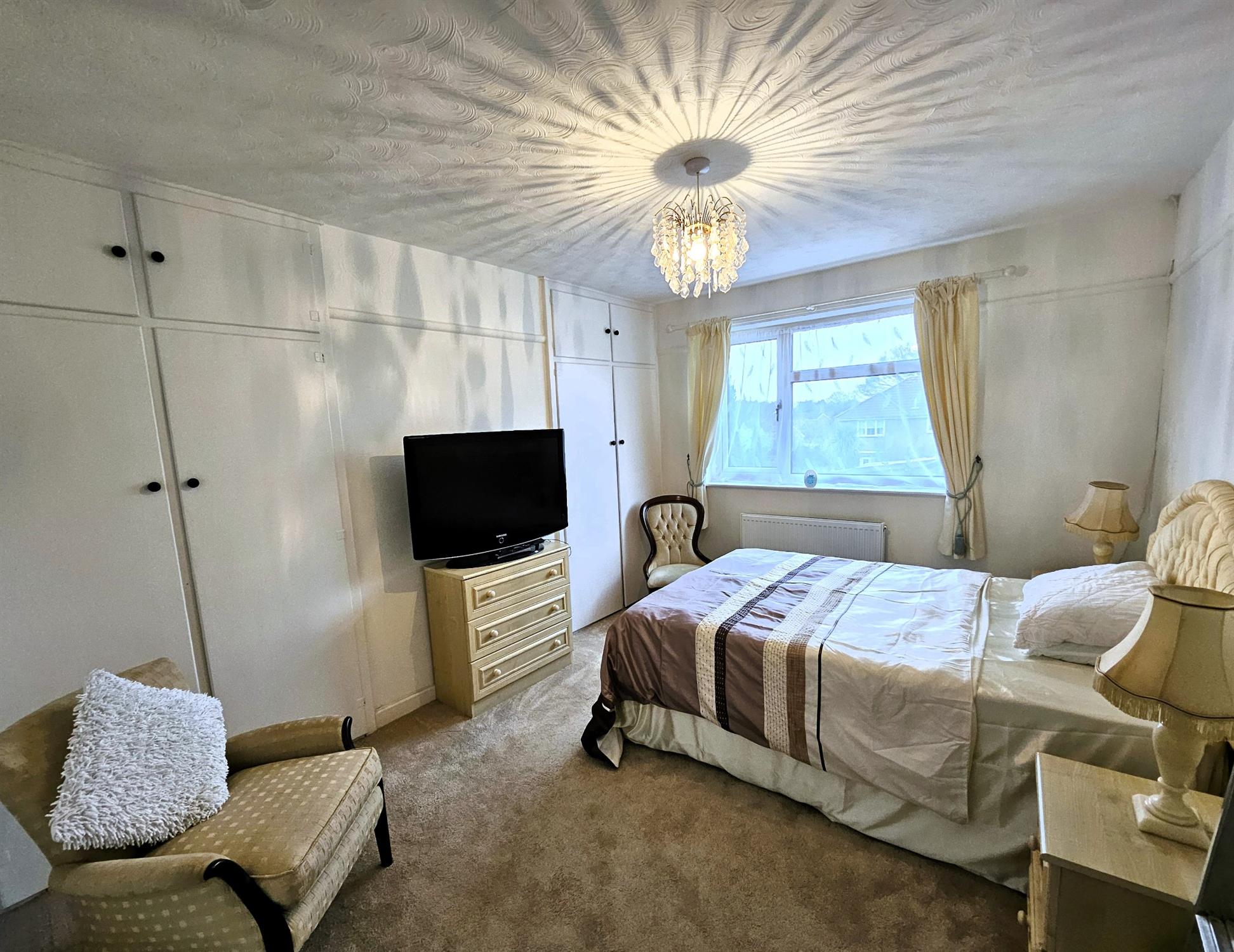 Double-glazed window to the rear aspect, picture rail, radiator, twin built in wardrobes to the chimney breast recess.