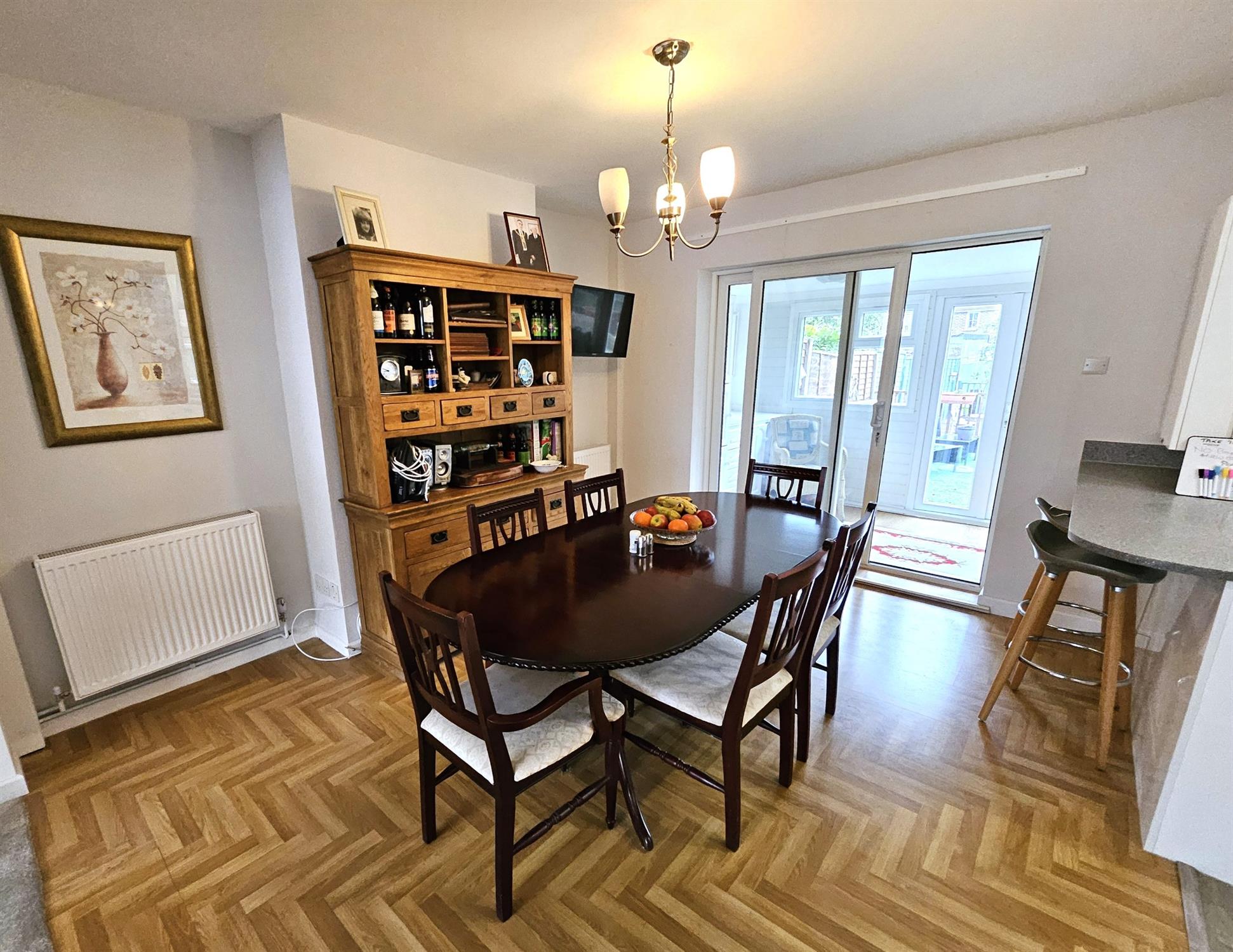 Herringbone timber flooring, radiator, uPVC double-glazed sliding doors to the rear aspect, open aspect to: